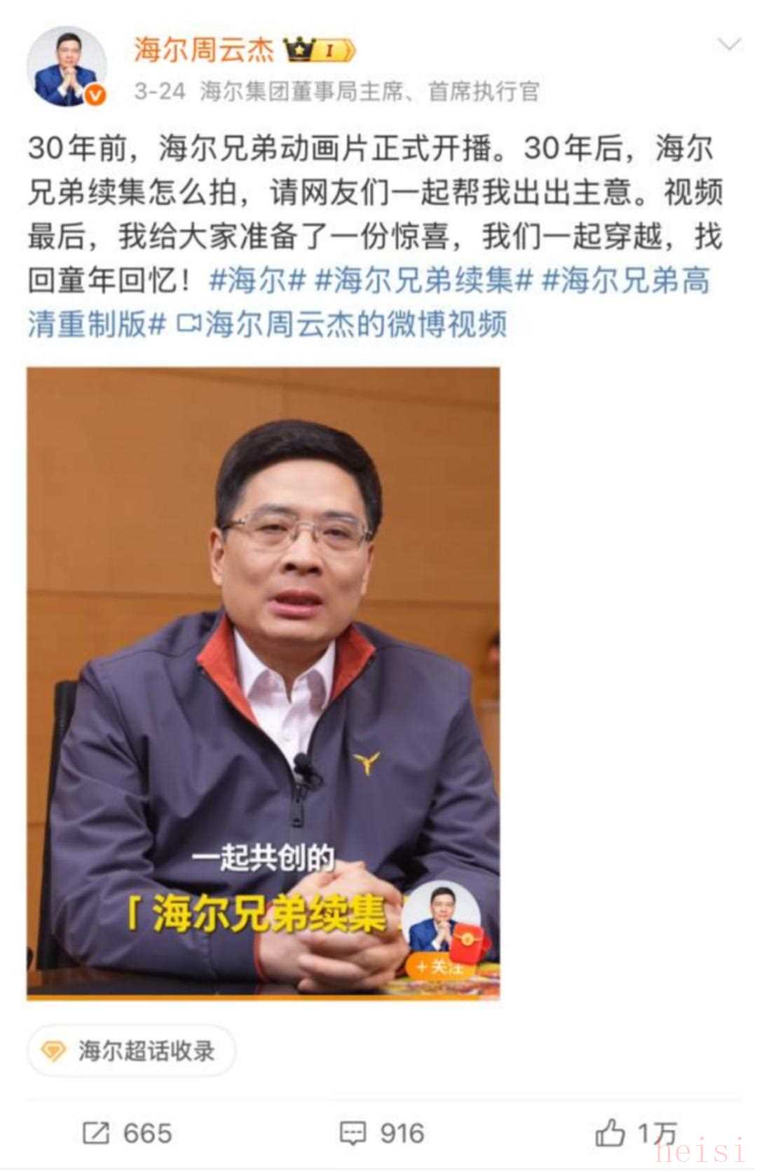 不久前,“海爾兄弟”被海爾集團CEO周云杰再次帶火。作為很多90后、00后的集體回憶,2025年是海爾兄弟誕生30周年,為了幫大家找回童年回憶,3月24日,《海爾兄弟》高清重制版登陸騰訊、B站等平臺,上線12小時騰訊視頻播放量突破8000萬,#海爾兄弟#登頂微博熱搜,閱讀量達2.5億。