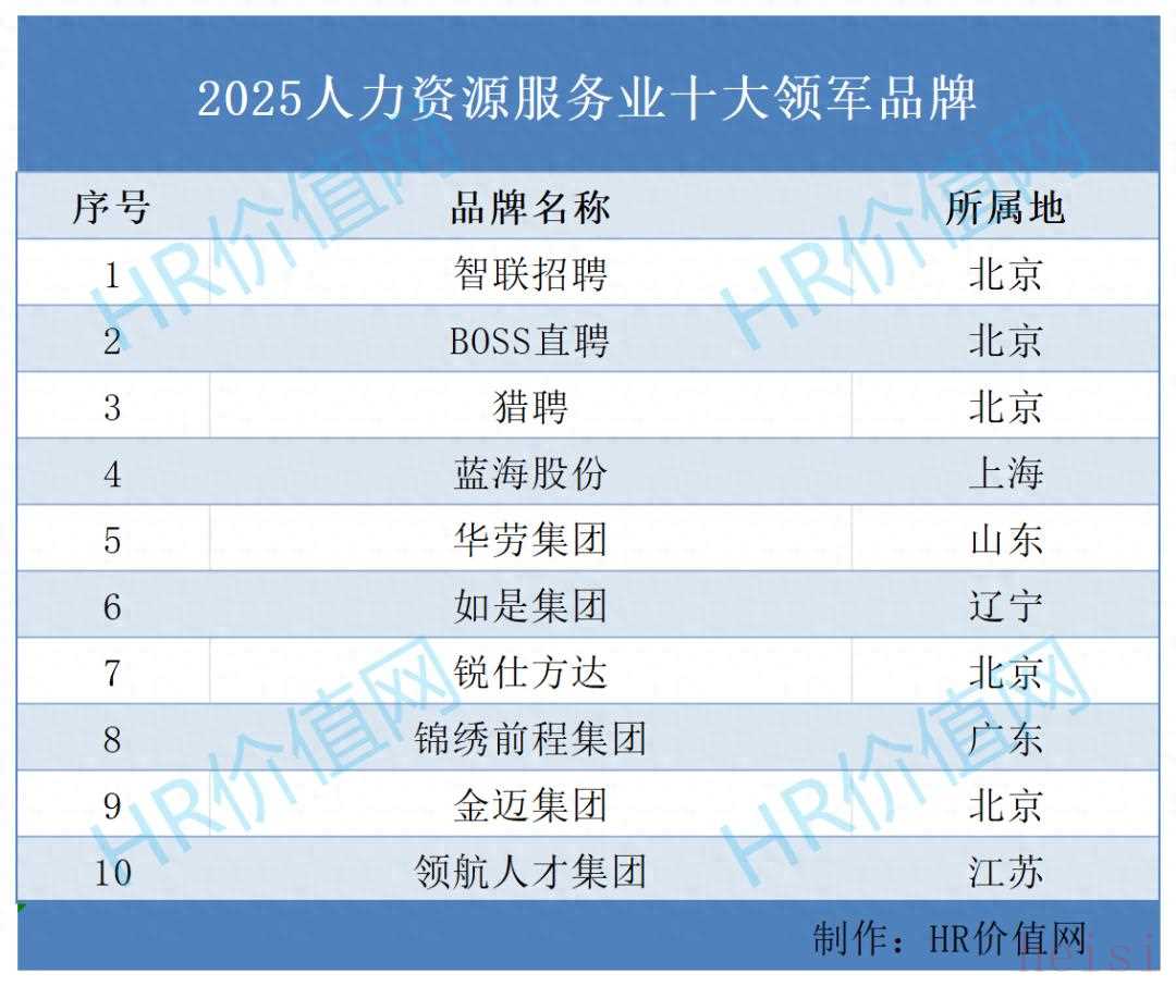 "2025人力資源服務(wù)業(yè)十大領(lǐng)軍品牌":