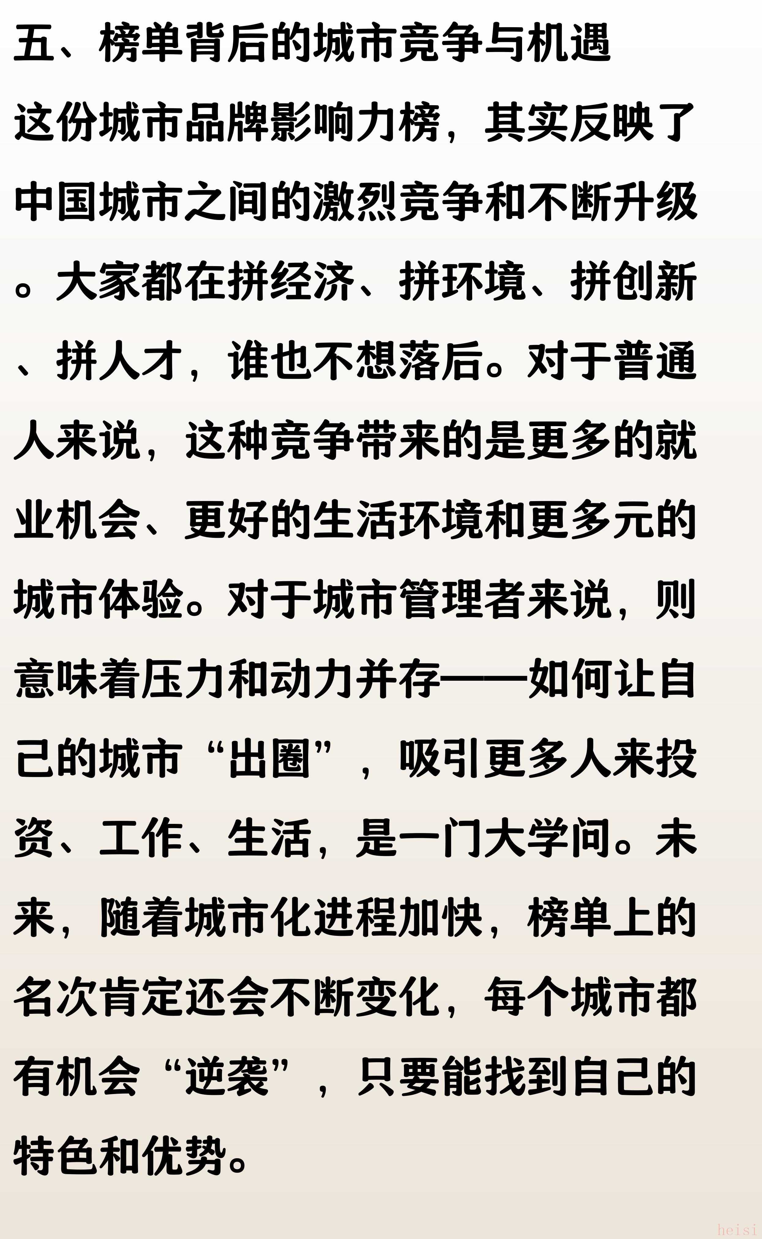城市發(fā)展各有千秋,榜單高低只是參考,關(guān)鍵還得看老百姓的幸福感和獲得感。