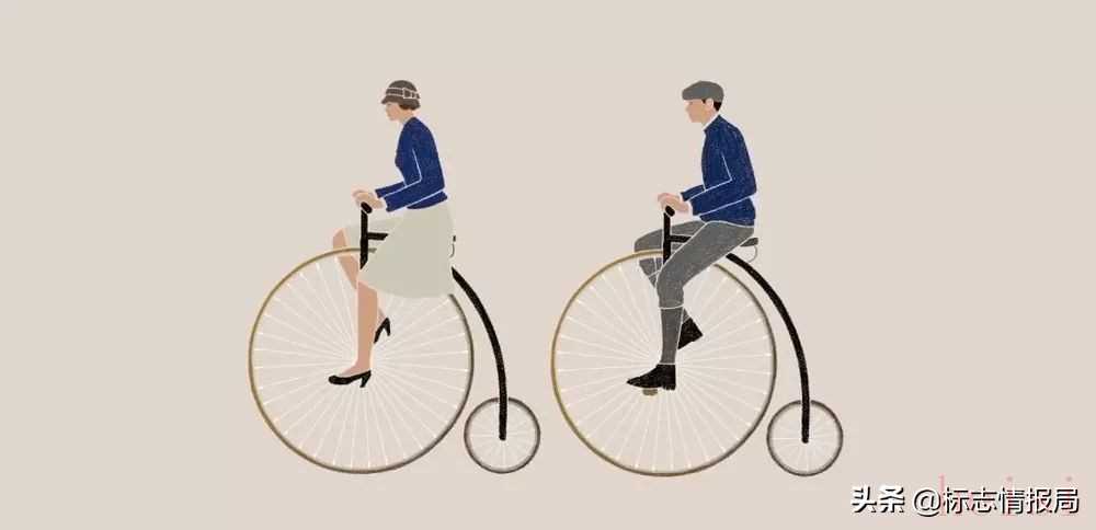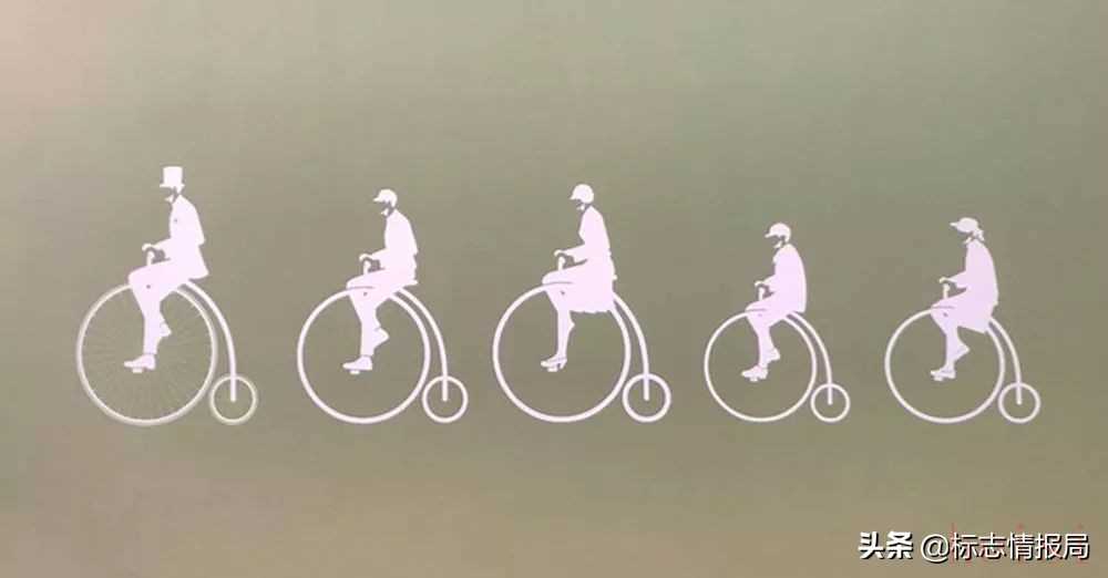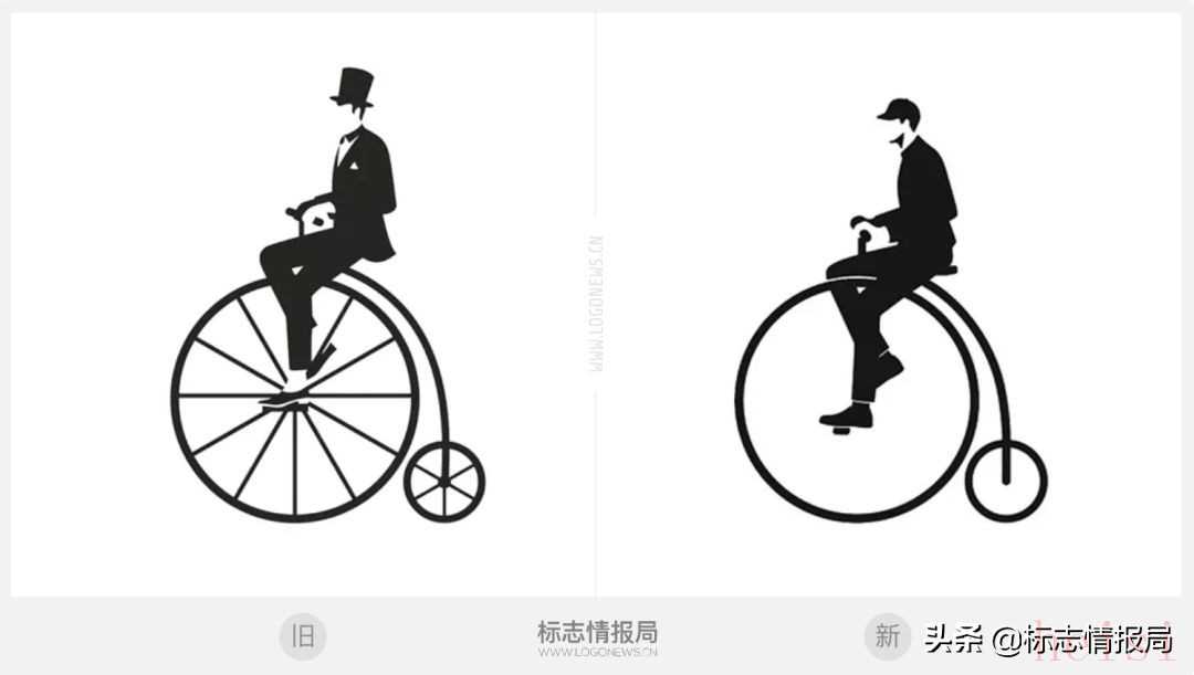 新版LOGO保留了帶有大前輪和小后輪的高輪自行車設(shè)計(jì)骨架,去掉了車輪中的輻條。