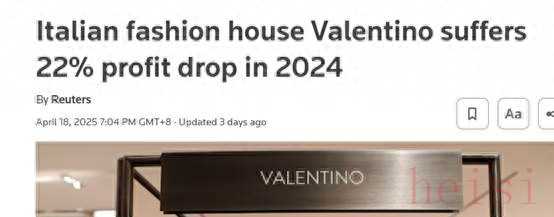 【環(huán)球網(wǎng)財經(jīng)綜合報道】據(jù)路透社消息,意大利知名時裝品牌華倫天奴(Valentino)于近日發(fā)布聲明,披露其2024年財務(wù)業(yè)績。數(shù)據(jù)顯示,受全球奢侈品行業(yè)需求波動,尤其是亞洲市場高端商品消費疲軟的影響,該公司去年營業(yè)利潤較前一年下降22%。
