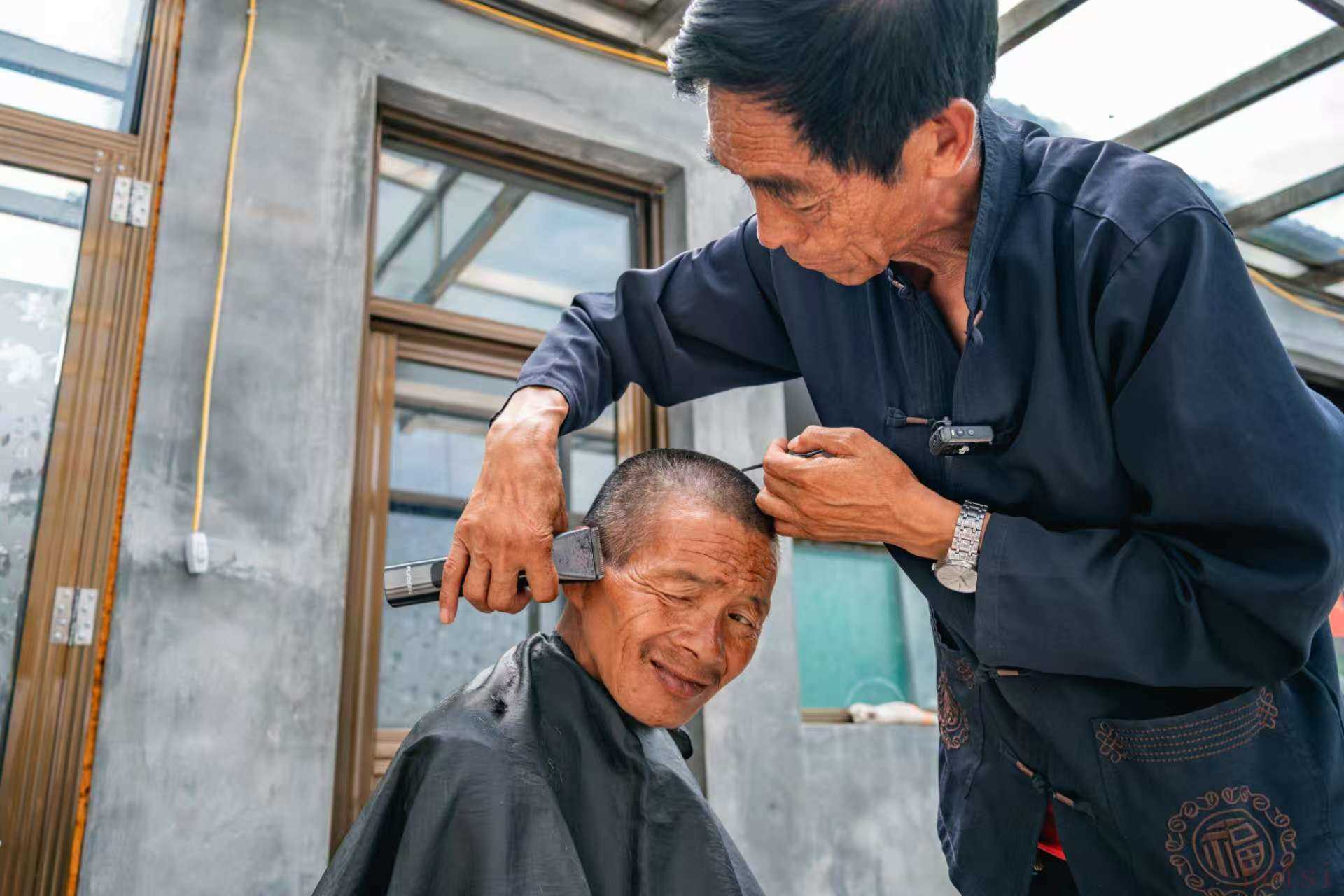 搬來板凳、拿出推子,桑建國開始給海松理發(fā)?!爸?,老書記和我父親經(jīng)常給海松理發(fā),現(xiàn)在他們年齡大了,這活兒就由我接了過來?!鄙=▏f。