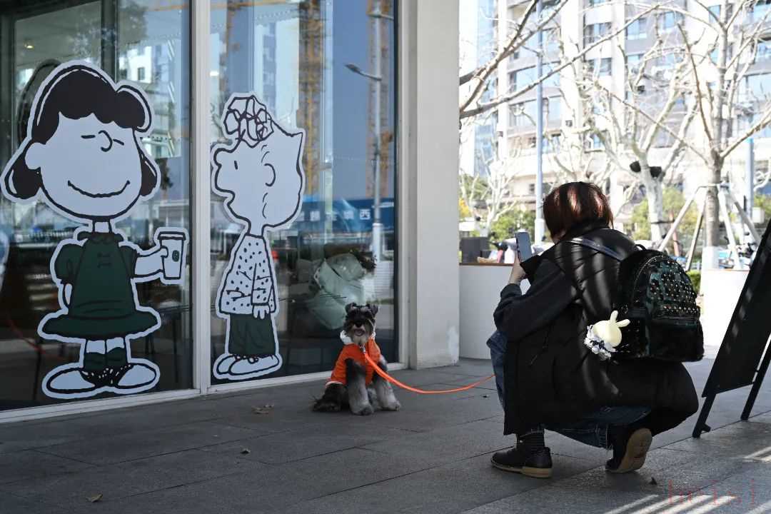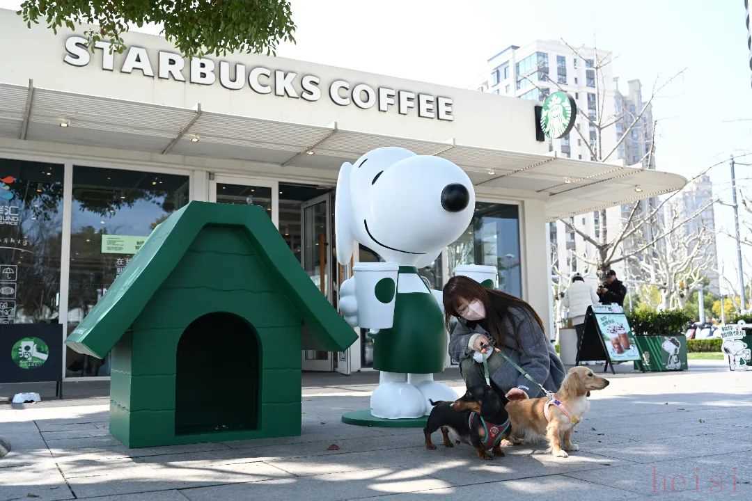 門店外的“停狗區(qū)”也是一大拍照打卡點,可以見到許多狗狗們與史努比這只比格犬的跨次元相遇。據(jù)了解,包含上海徐匯濱江店在內(nèi),全國共有61家星巴克門店共同舉辦“和你加倍快樂主題聯(lián)名漫畫展”。