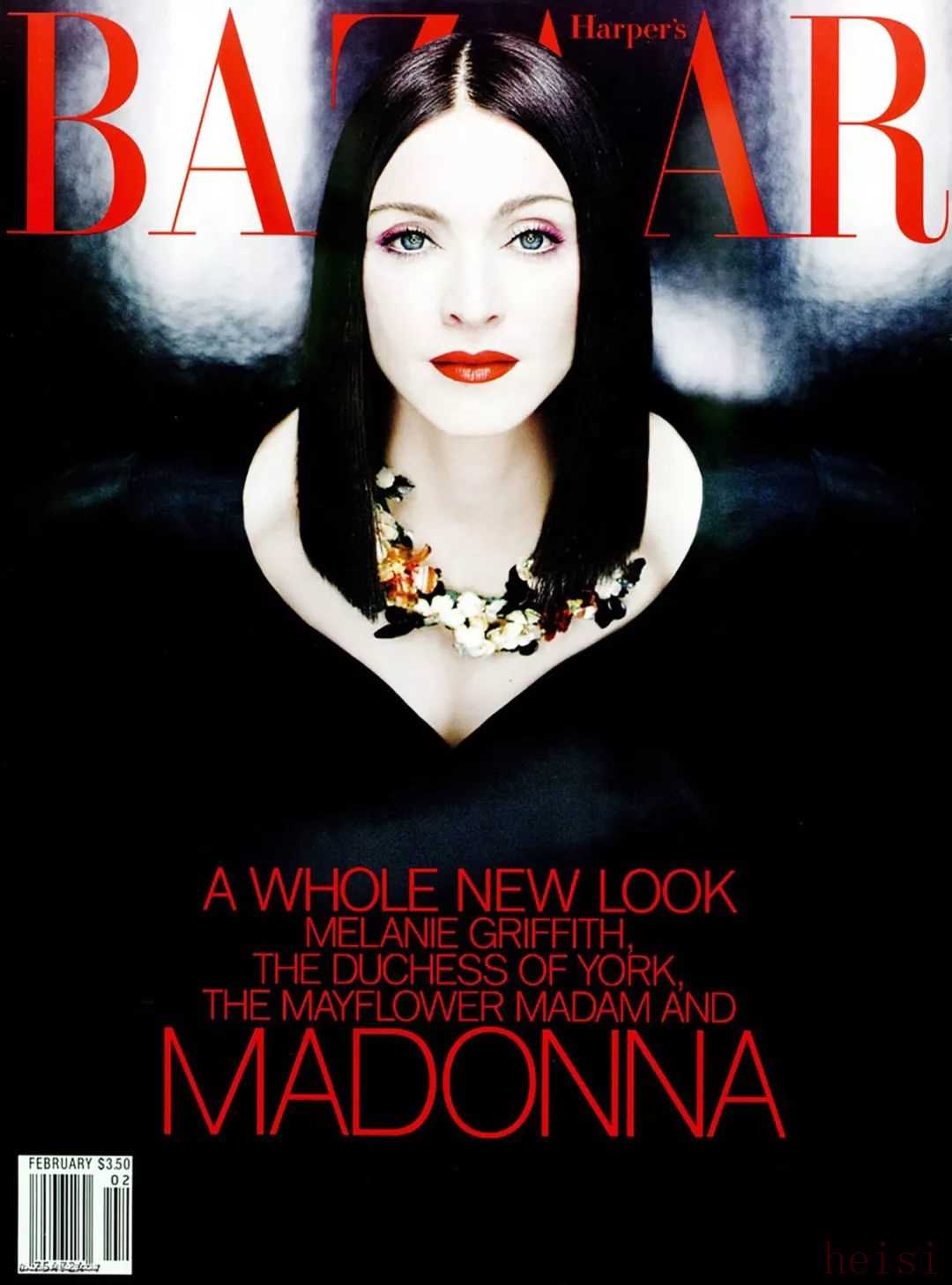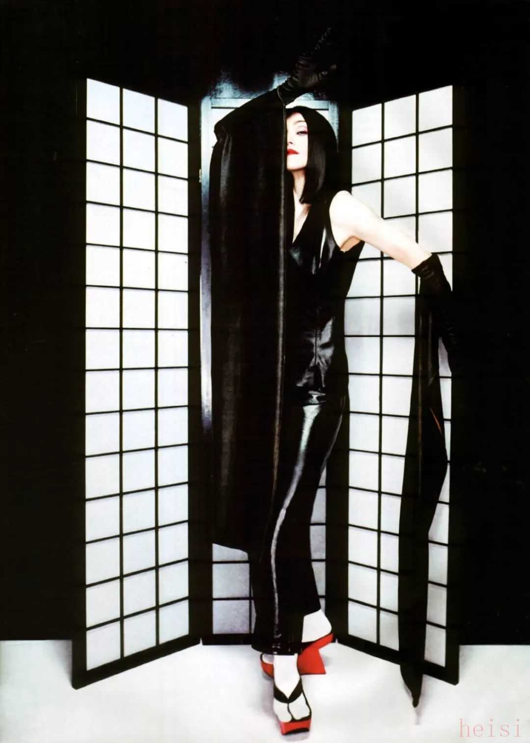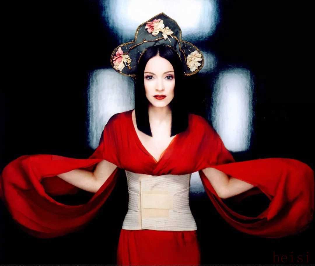 此時, Madonna 融合未來感和民族/宗教風格的個人形象也得到時裝界追捧: 拍攝 Versace 廣告, 并以品牌摯友身份, 身穿高級定制 PVC 緊身上裝拍攝專輯封面; 在 VH1 Fashion Awards、奧斯卡頒獎典禮等典禮上選擇了設計師 Olivier Theyskens 的拖拽黑色晚禮服, 力推新人; Grammy 頒獎典禮以一襲 Gaultier 定制的猩紅日本藝妓前衛(wèi)造型開場. 在攝影大師 Patrick Demarchelier 掌鏡的這期 Harper's BAZAAR 中, 就成了她一段難忘的”藝妓回憶錄“ (期間作為原著粉, Madonna 曾接觸過《藝妓回憶錄》當時的導演 Steven Spielberg)。