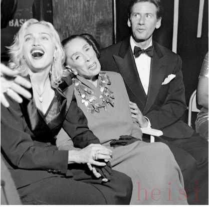 Madonna 與恩師、現代舞創(chuàng)始人之一Martha Graham, 圖右為美國設計師Calvin Klein
