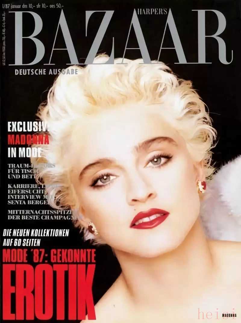1987年,出道4年的Madonna開啟了個人首次全球巡演,落地德國, 借此機會與《時尚芭莎》結緣,以一襲俏麗金色短發(fā)和黑色皮衣率性造型登上德國版芭莎封面并拍攝內頁大片。