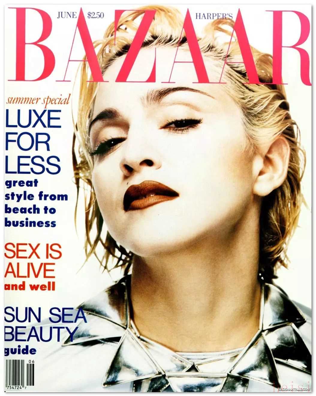 1990年,Madonna第二次登上美國版芭莎封面。此刻的Madonna 迎來了她出道十五年的全盛時代,每一本出版刊物的封面——從時裝雜志到音樂雜志,從星座雜志到機場雜志,她成了這個時代無處不在的巨星,Madonna 也選擇了本期《時尚芭莎》,做為她即將開展的又一場全球巡演的舞臺造型首發(fā),而這一次,又將顛覆她“百變女王”這個稱號的定義。