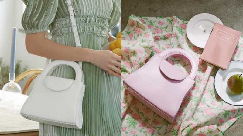 奶油色的圓弧型手袋,視覺(jué)上散發(fā)可愛(ài)氛圍。