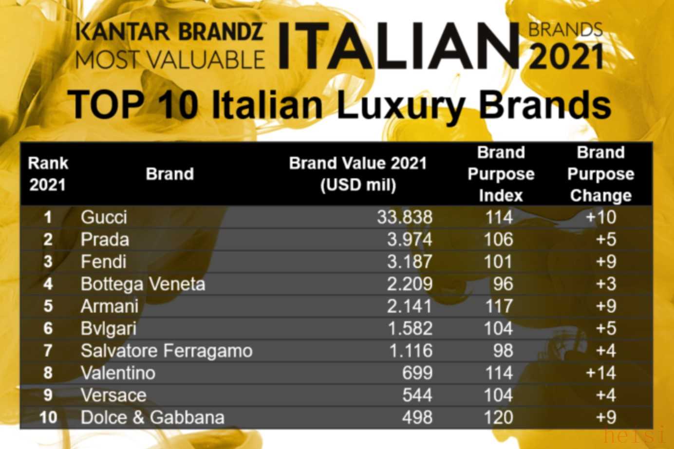 盡管疫情曾經(jīng)在意大利非常嚴(yán)重,但2021年,意大利重要的奢侈品牌的價(jià)值都比2019年實(shí)現(xiàn)了增長(zhǎng)。