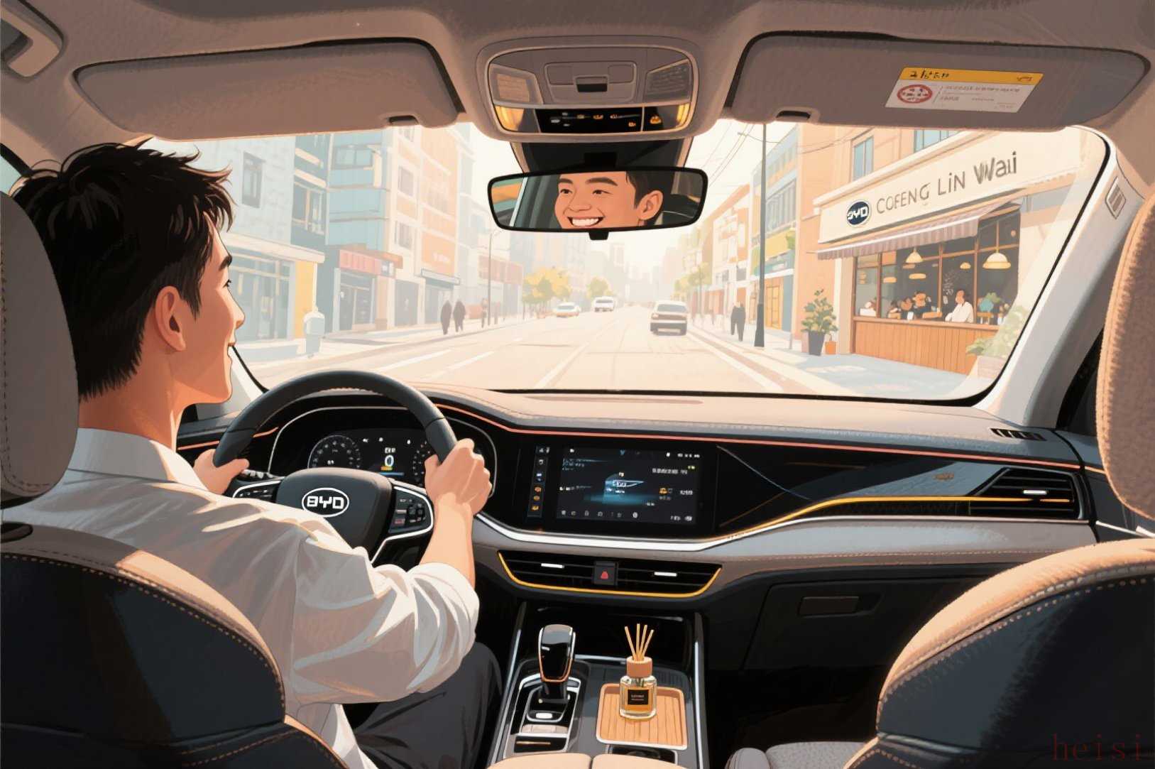 不遠處,那輛比亞迪漢的車燈閃了兩下,流暢的車身線條在陽光下泛著光澤。