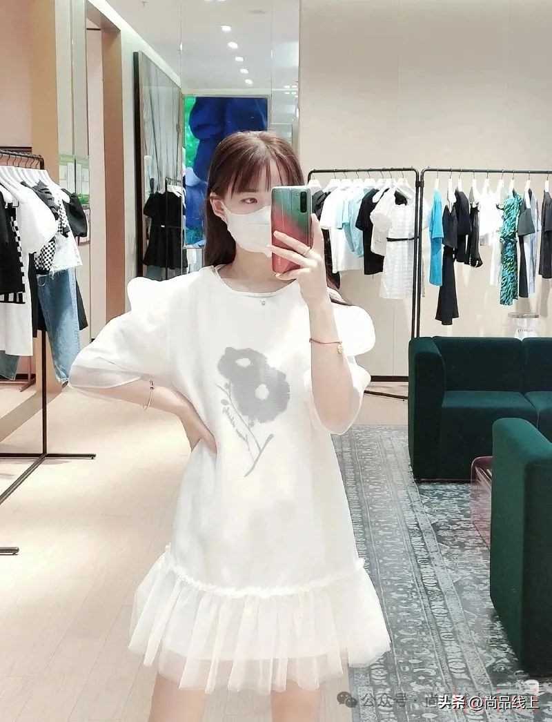 這款白色連衣裙,圓領(lǐng)簡約大方,泡泡袖增添甜美感。胸前水墨風(fēng)花朵印花,雅致有藝術(shù)感,裙擺網(wǎng)紗拼接,輕盈靈動。
