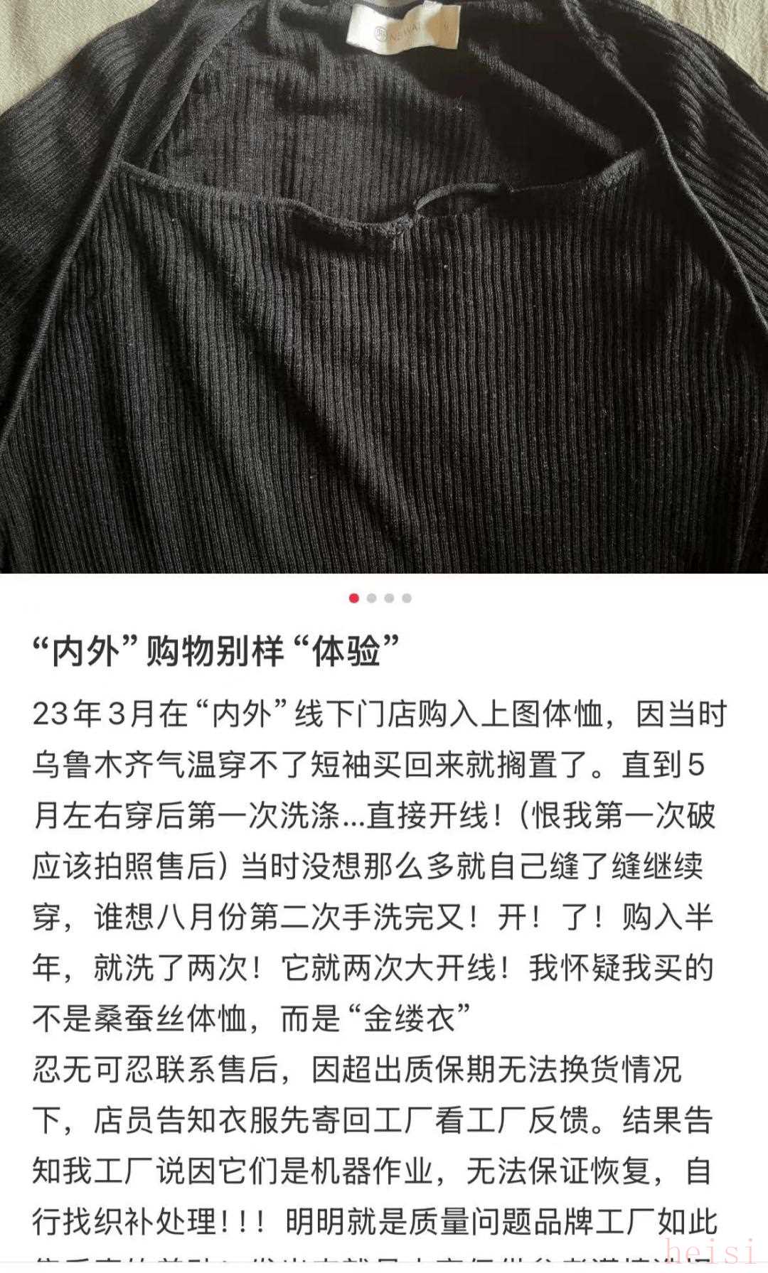 在品牌發(fā)展初期,NEIWAI內(nèi)外主要是靠團(tuán)隊(duì)和社群跟用戶建立連接,當(dāng)時(shí)通過“她說”等女性文化論壇和采訪記錄,精準(zhǔn)觸達(dá)品牌核心用戶。2017年,NEIWAI內(nèi)外建立了內(nèi)部創(chuàng)意團(tuán)隊(duì),誕生了很多不錯(cuò)的創(chuàng)意。例如2022年的“No Body is Nobody”廣告,通過記錄30位女性并不完美的身體狀態(tài),傳遞對(duì)女性身體和內(nèi)心的陪伴與關(guān)注,引起業(yè)內(nèi)關(guān)注。劉小璐曾指出:“在過去,品牌創(chuàng)意往往被視作為一種非常孤獨(dú)的能力。內(nèi)外深受女性用戶喜愛的原因在于,從內(nèi)到外,從身體到情感的共鳴,持續(xù)通過高質(zhì)量的創(chuàng)意,成就一個(gè)有情感價(jià)值的品牌?!?/span>2025年,在小紅書等平臺(tái)上,內(nèi)外了女性聾人藝術(shù)家、舞蹈家、導(dǎo)演等訪談,用女性話題引起共鳴。實(shí)際上,不止內(nèi)容宣傳,設(shè)計(jì)、銷售方式及質(zhì)量等,都是最直接影響到顧客感官和體驗(yàn)的存在。近年來,內(nèi)外除主線NEIWAI內(nèi)外,拓展了女性運(yùn)動(dòng)服飾品牌NEIWAI ACTIVE,以及日常衣物青年品牌NEIWAI Orange,涵蓋運(yùn)動(dòng)、戶外、防曬、職場、瑜伽、滑雪、舞蹈等場景。其中,NEIWAI的旗艦店推出百元產(chǎn)品,甚至百元以下系列,線下店客單價(jià)則在千元左右,一些冬季羊絨大衣的價(jià)格甚至可以達(dá)到3000元左右。但是產(chǎn)品質(zhì)量卻飽受詬病。在小紅書,不少內(nèi)外官號(hào)所發(fā)布的內(nèi)容下面都有消費(fèi)者對(duì)于產(chǎn)品質(zhì)量的控訴。有消費(fèi)者反饋,自己在內(nèi)外購買一千元左右的毛衣出現(xiàn)穿了兩天就起球、洗了一次就變形的情況。還有消費(fèi)者表示,自己花1100元購買的針織衫洗了一次就出現(xiàn)變形、褪色的情況。店員對(duì)其表示由于桑蠶絲很嬌貴,衣服不能機(jī)洗、不能干洗、不能曬太陽,要用特殊的洗衣液洗。據(jù)其反饋,內(nèi)外在廣東的線下店銷售情況一般,曾經(jīng)購買過的店鋪已經(jīng)撤店了。