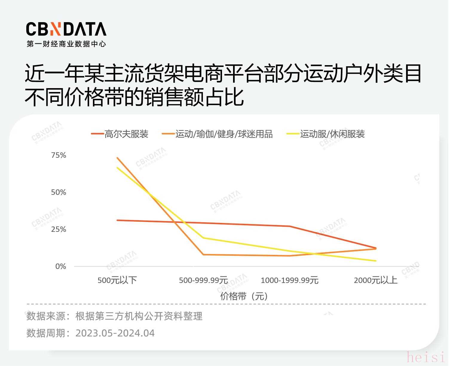 盡管高爾夫運(yùn)動(dòng)呈現(xiàn)出典型的大眾化趨勢,也有越來越多品牌加入這一賽道,但高爾夫用品的價(jià)格仍未被“打下來”。品牌們的專業(yè)高爾夫系列服裝,普遍價(jià)格在千元以上。相對其他運(yùn)動(dòng)品類,高爾夫服裝各價(jià)格帶的銷售額分布更加均勻,千元以上商品也能夠“賣得好”。這在某種程度上證明著,或許高爾夫運(yùn)動(dòng)離真正“下凡”尚有一定距離?;蛘哒f,高爾夫的年輕受眾們本不在意高爾夫運(yùn)動(dòng)“應(yīng)該”需要哪些專業(yè)裝備,而更注重Golfcore所蘊(yùn)含的個(gè)性表達(dá)與松弛感。