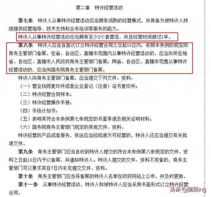 在本條例中對于加盟連鎖行業(yè)做出了明確的規(guī)范: