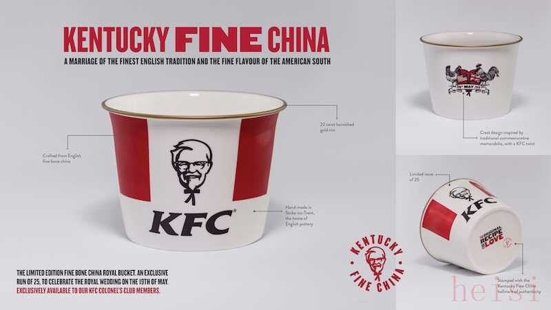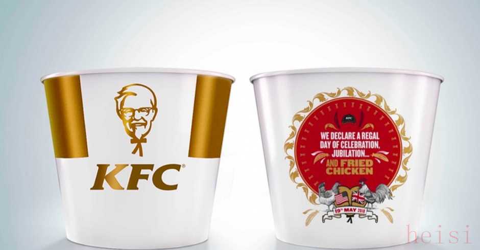 至于肯德基與皇室婚禮的關(guān)系,他們是這么解釋的——哈里向梅根的求婚就是在他親手制作的烤雞宴之后,肯德基的炸雞桶也是為新人結(jié)合慶祝的方式。