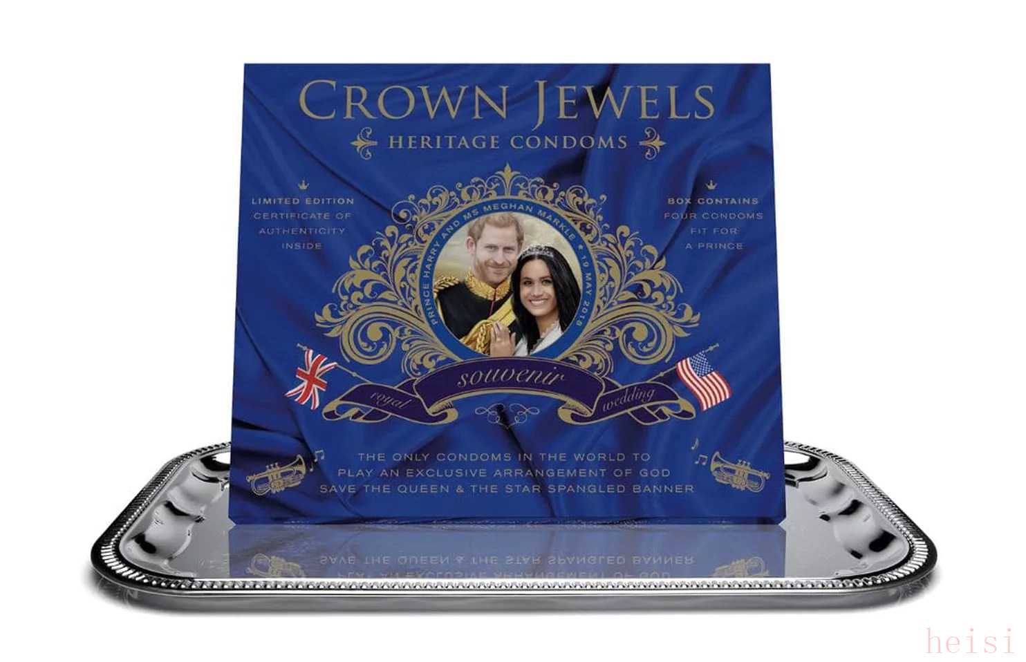 安全套品牌Crown Jewels Heritage推出的皇室婚禮限定版安全套。商品描述寫(xiě)著“完美吻合王子尺寸(fit for a Prince)”,上面還印著二人幸福地靠在一起的照片: