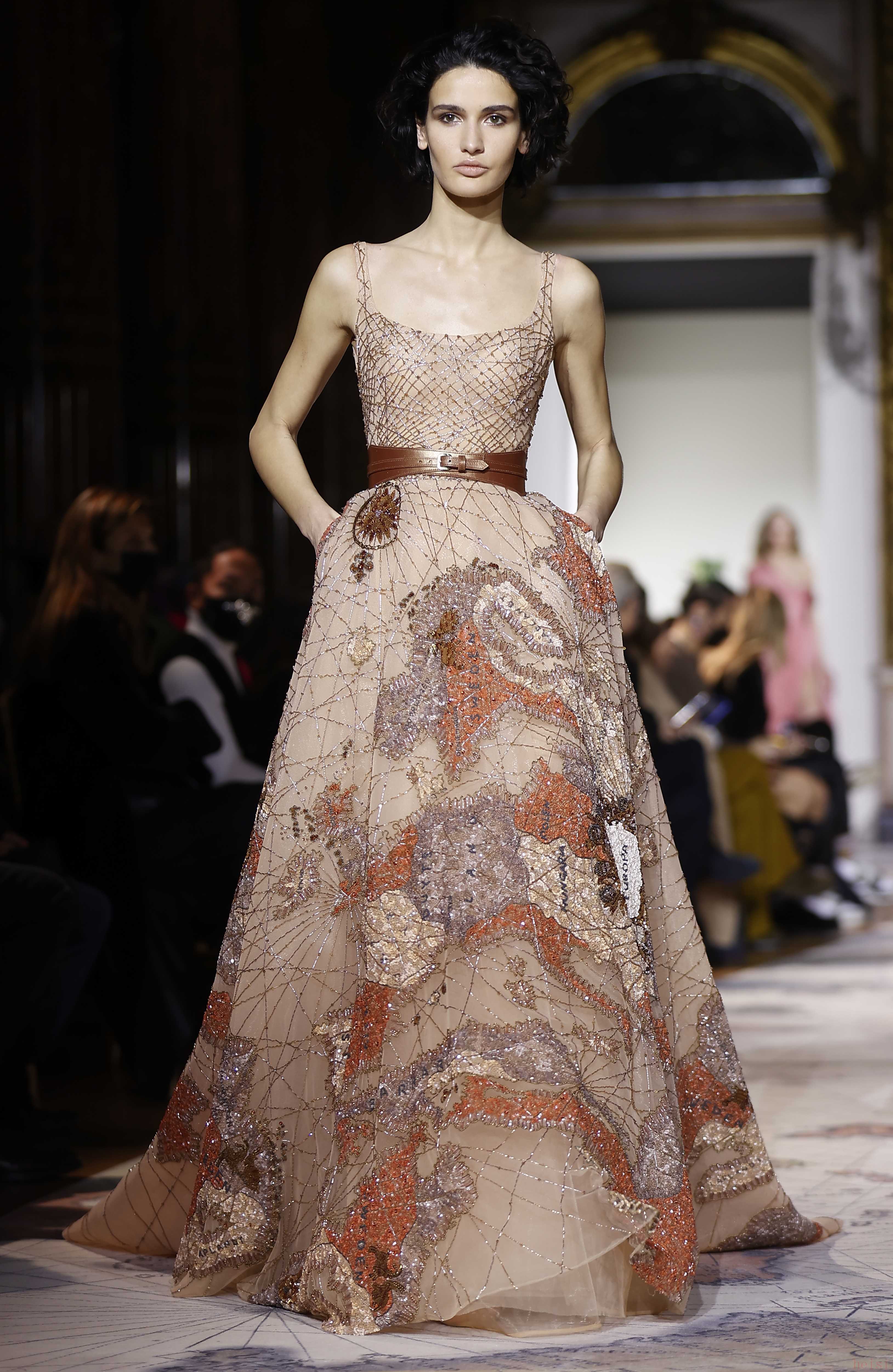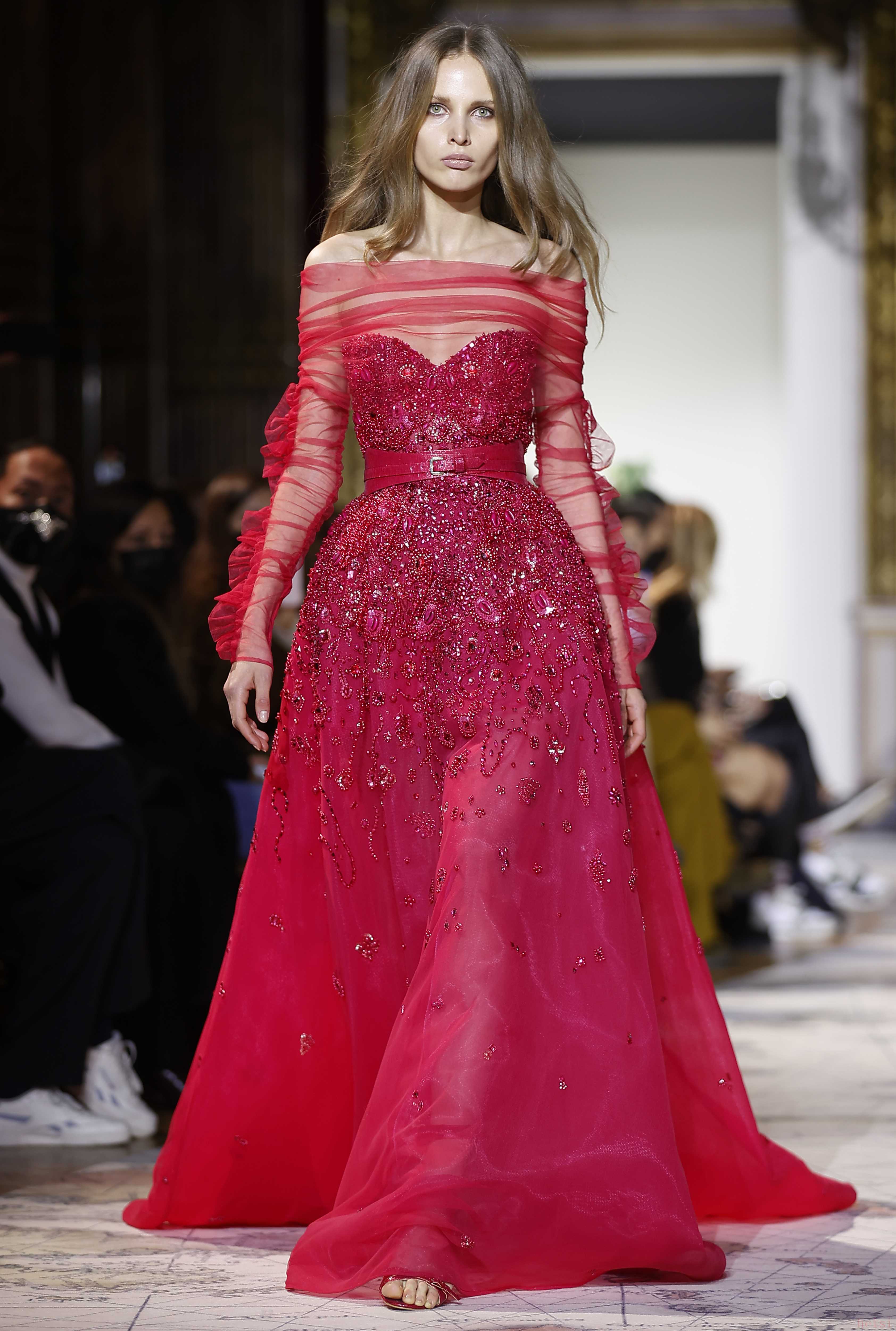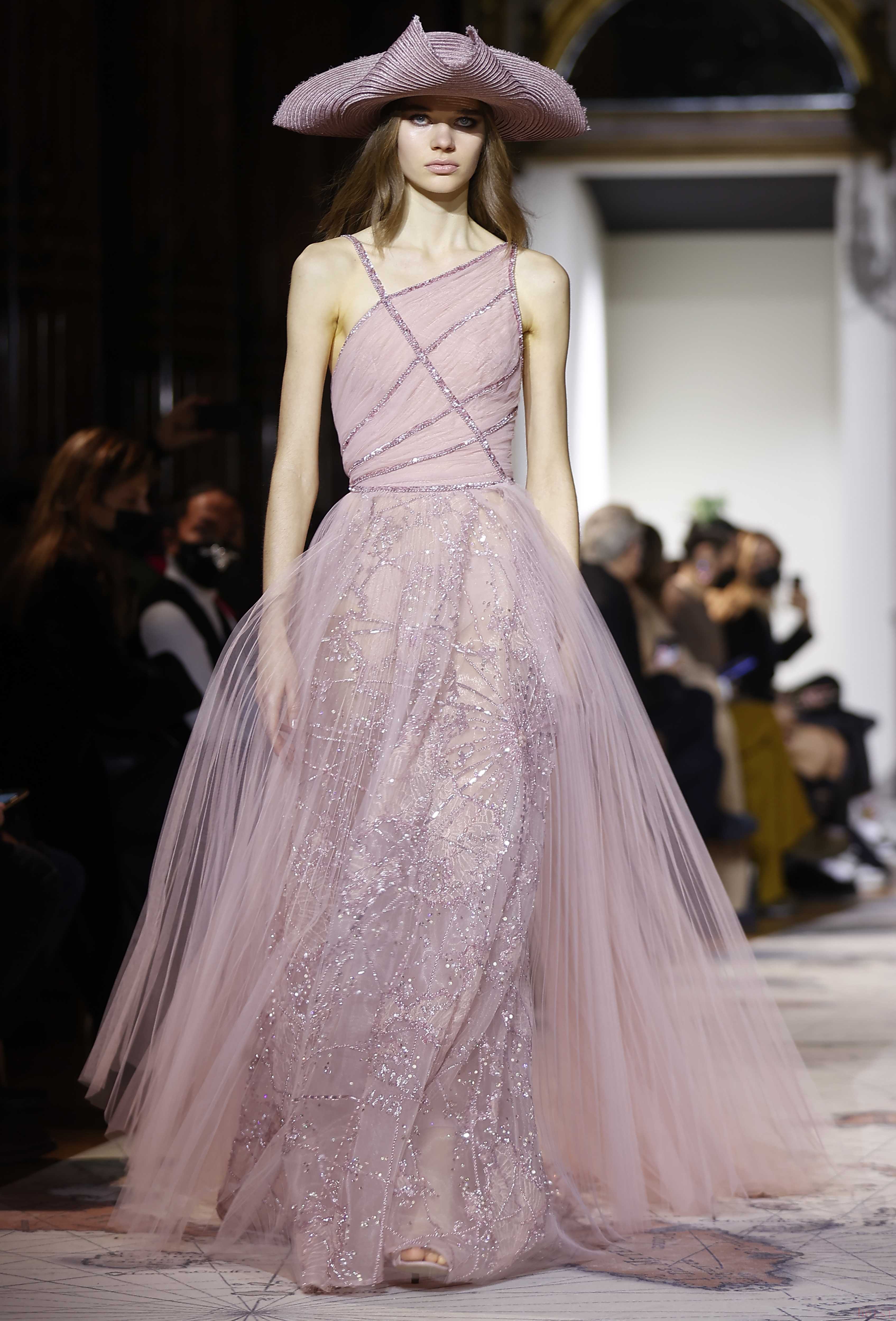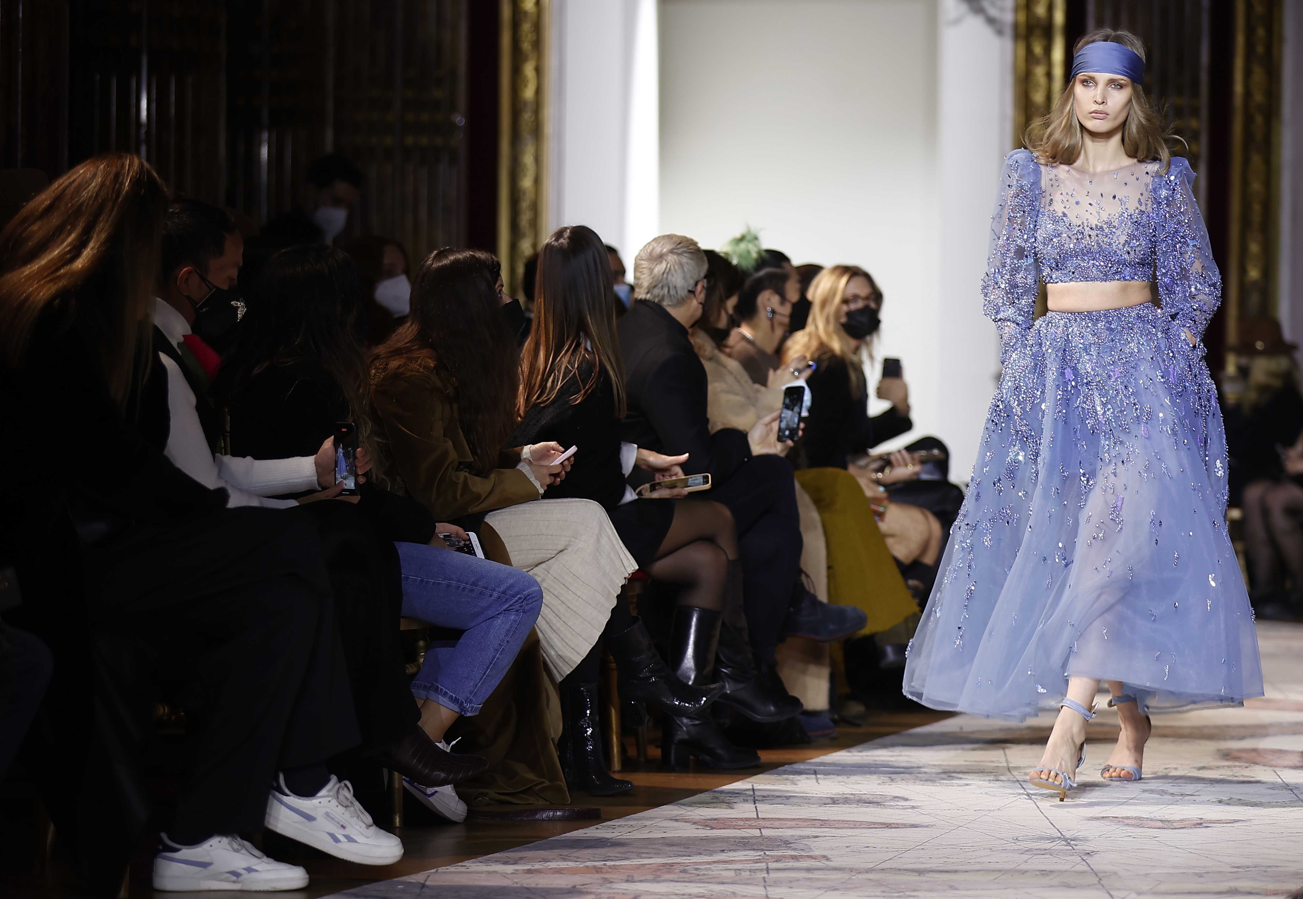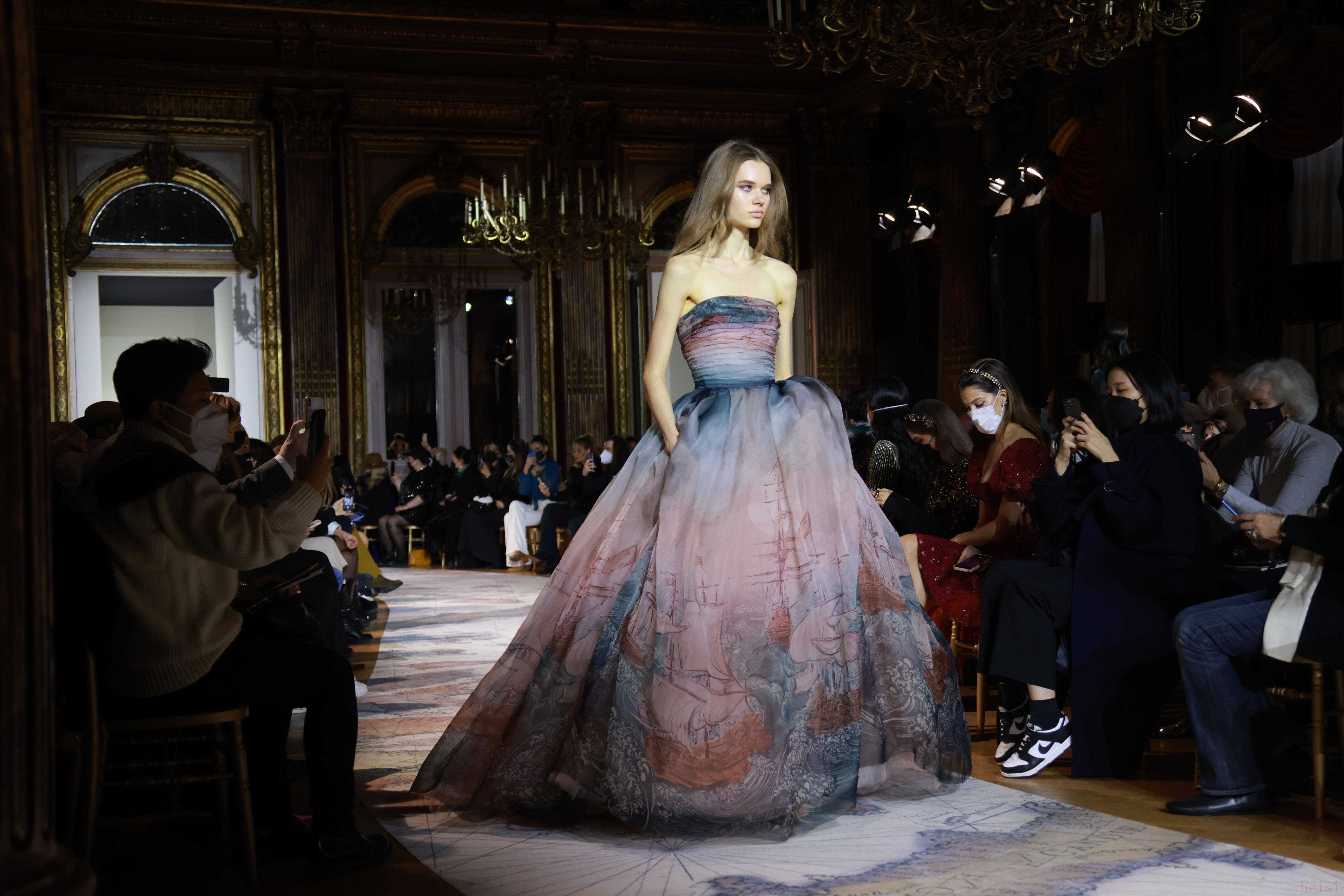 1月26日,在法國巴黎高級定制時裝周上,模特展示Zuhair Murad品牌2022春夏新品。 新華社/歐新