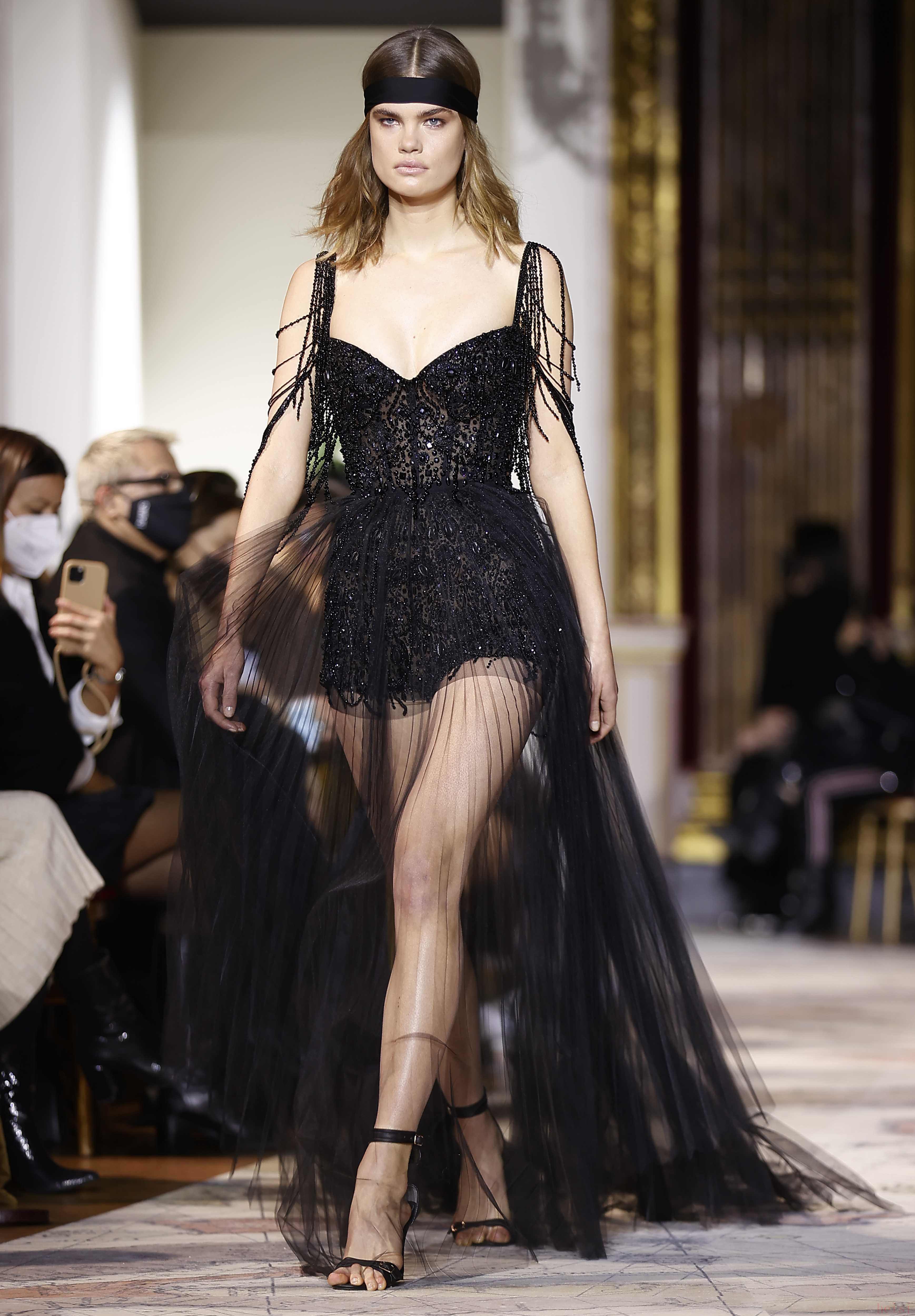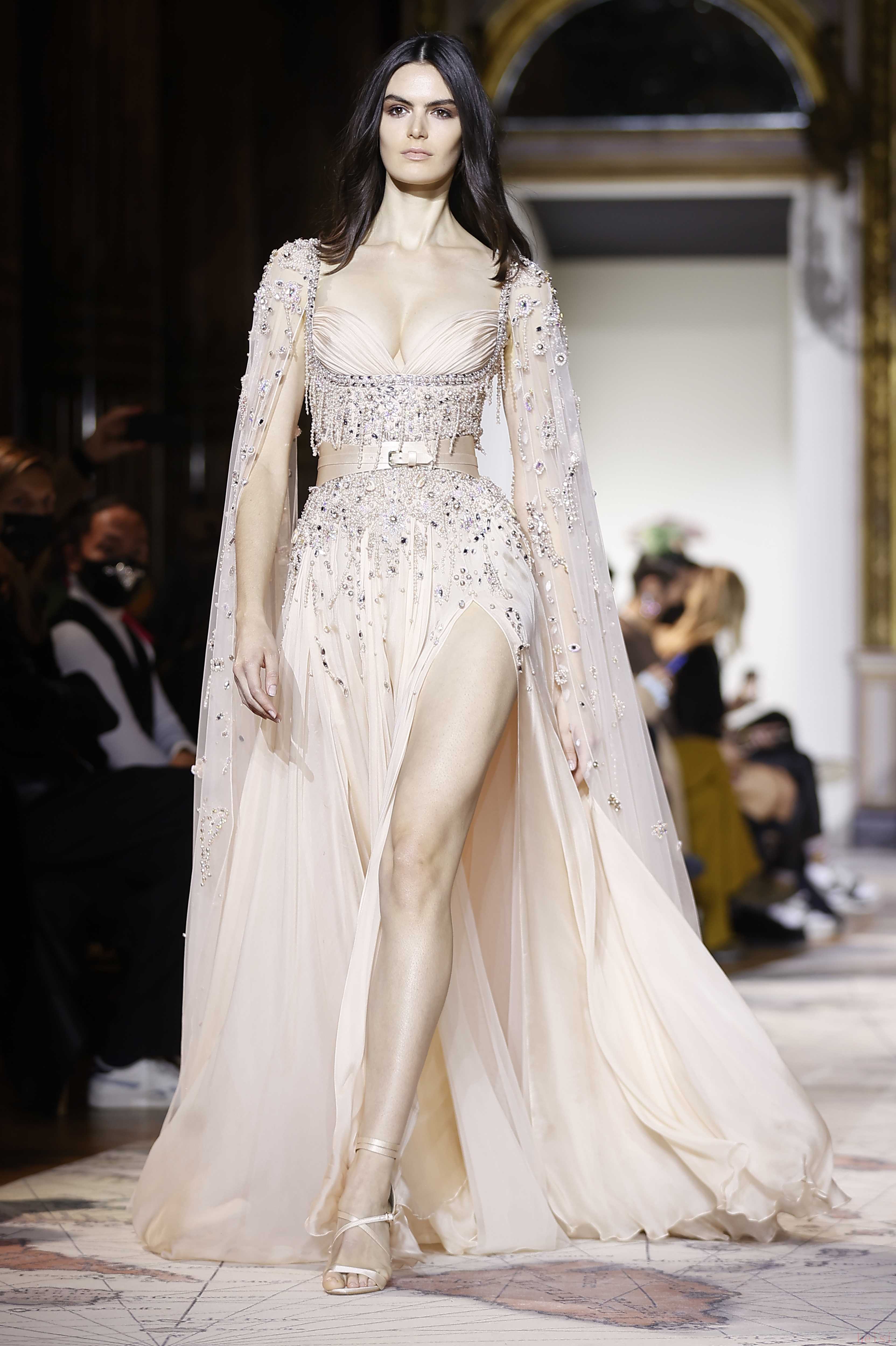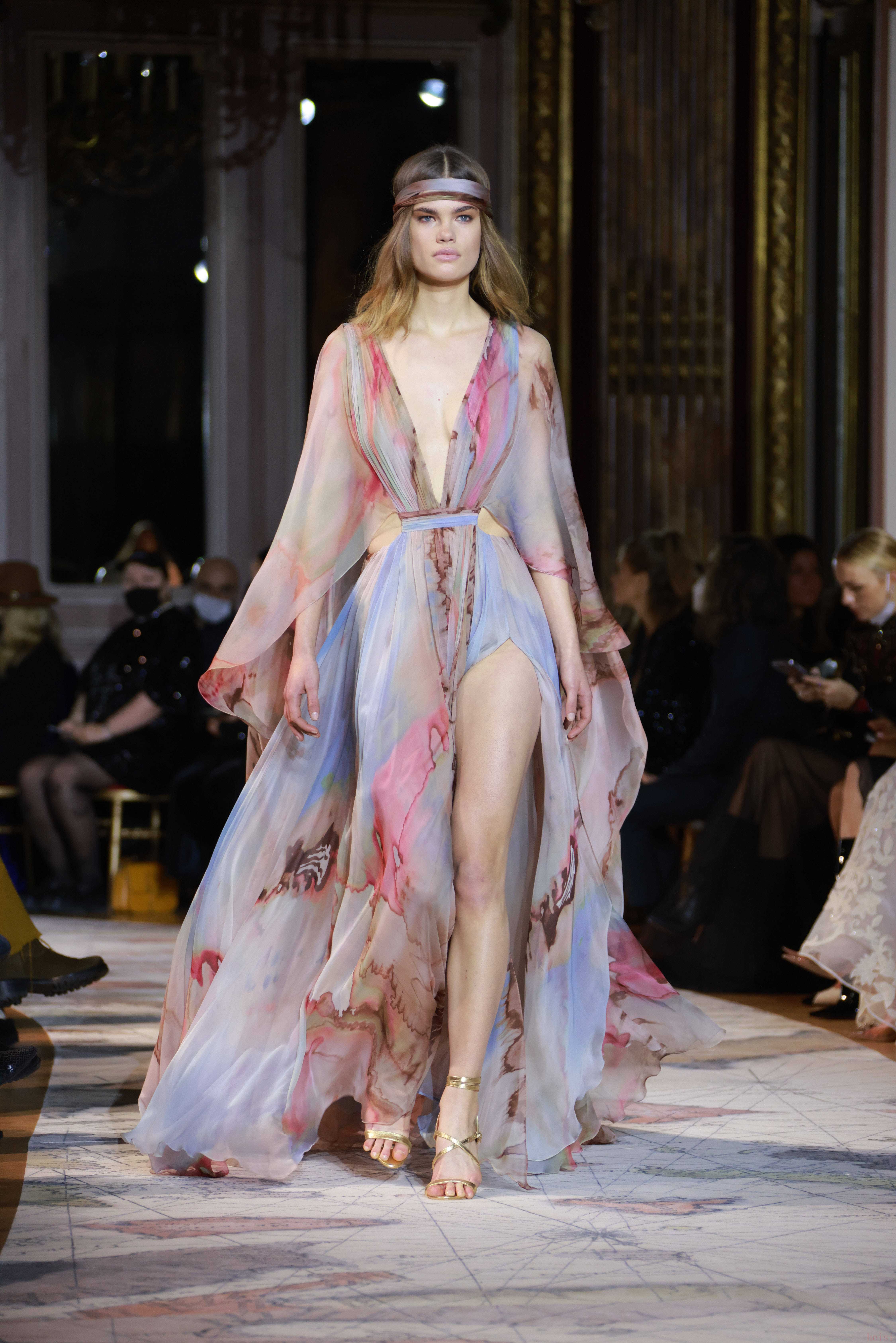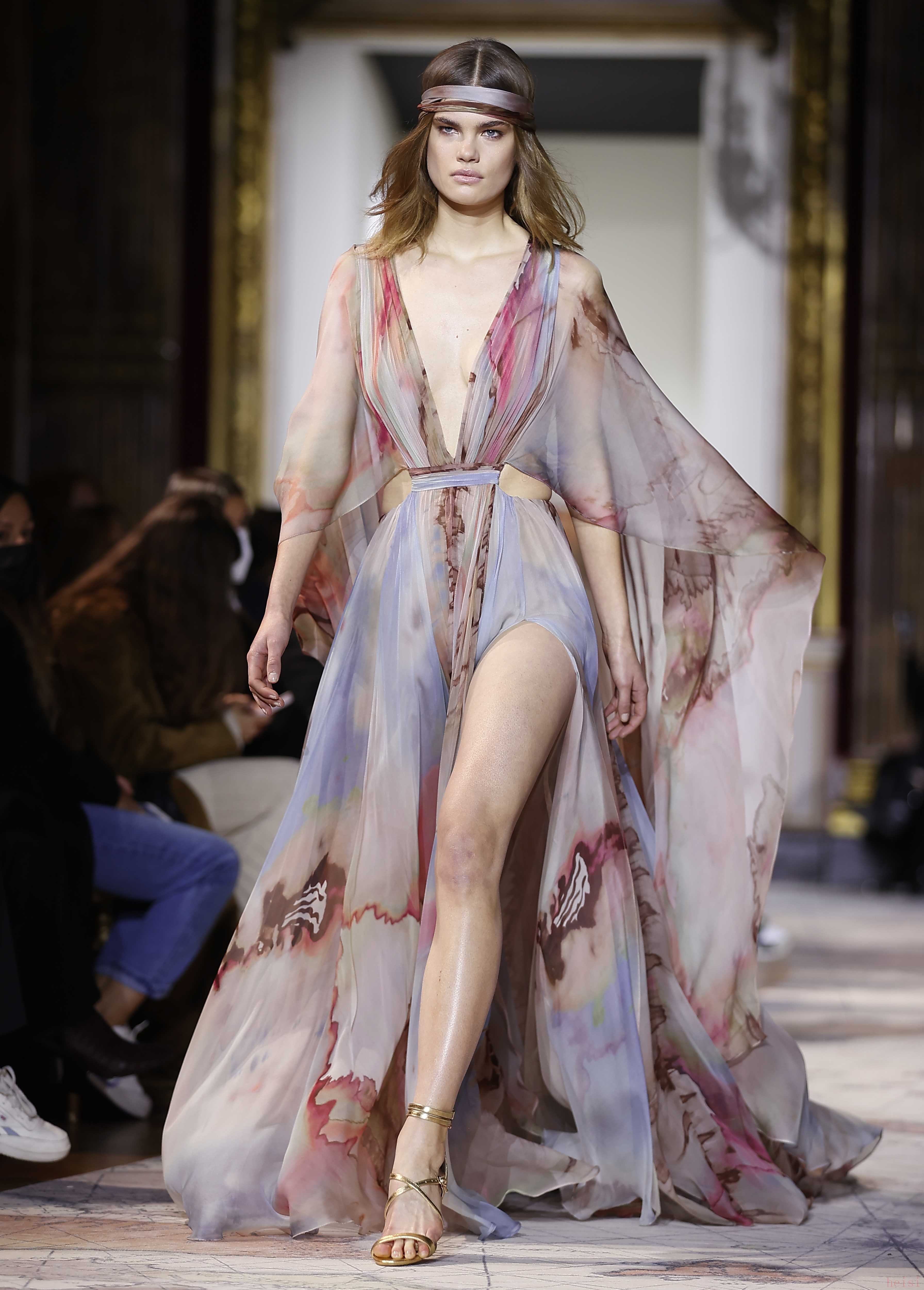 1月26日,在法國巴黎高級定制時裝周上,模特展示Zuhair Murad品牌2022春夏新品。 新華社/歐新