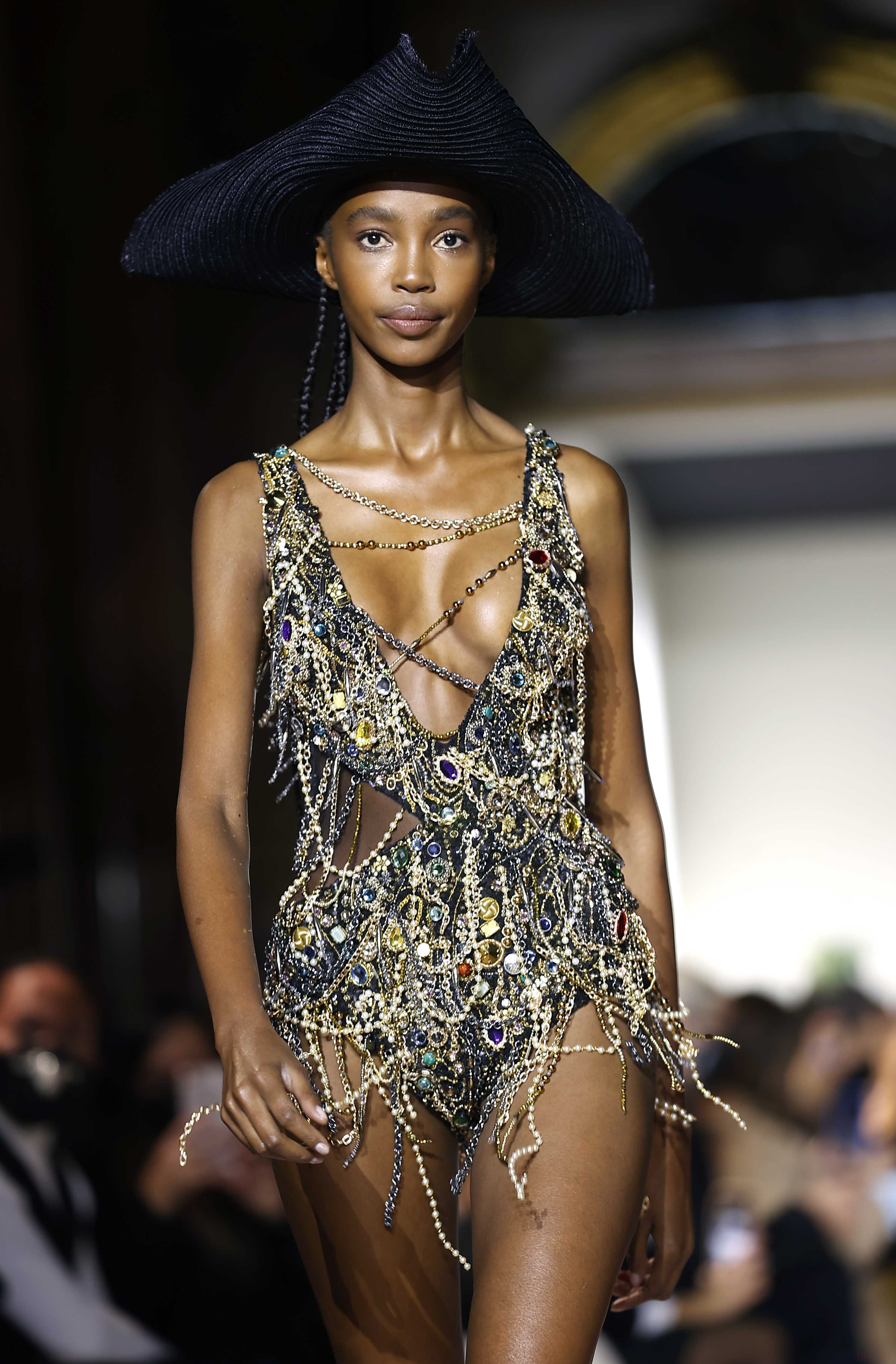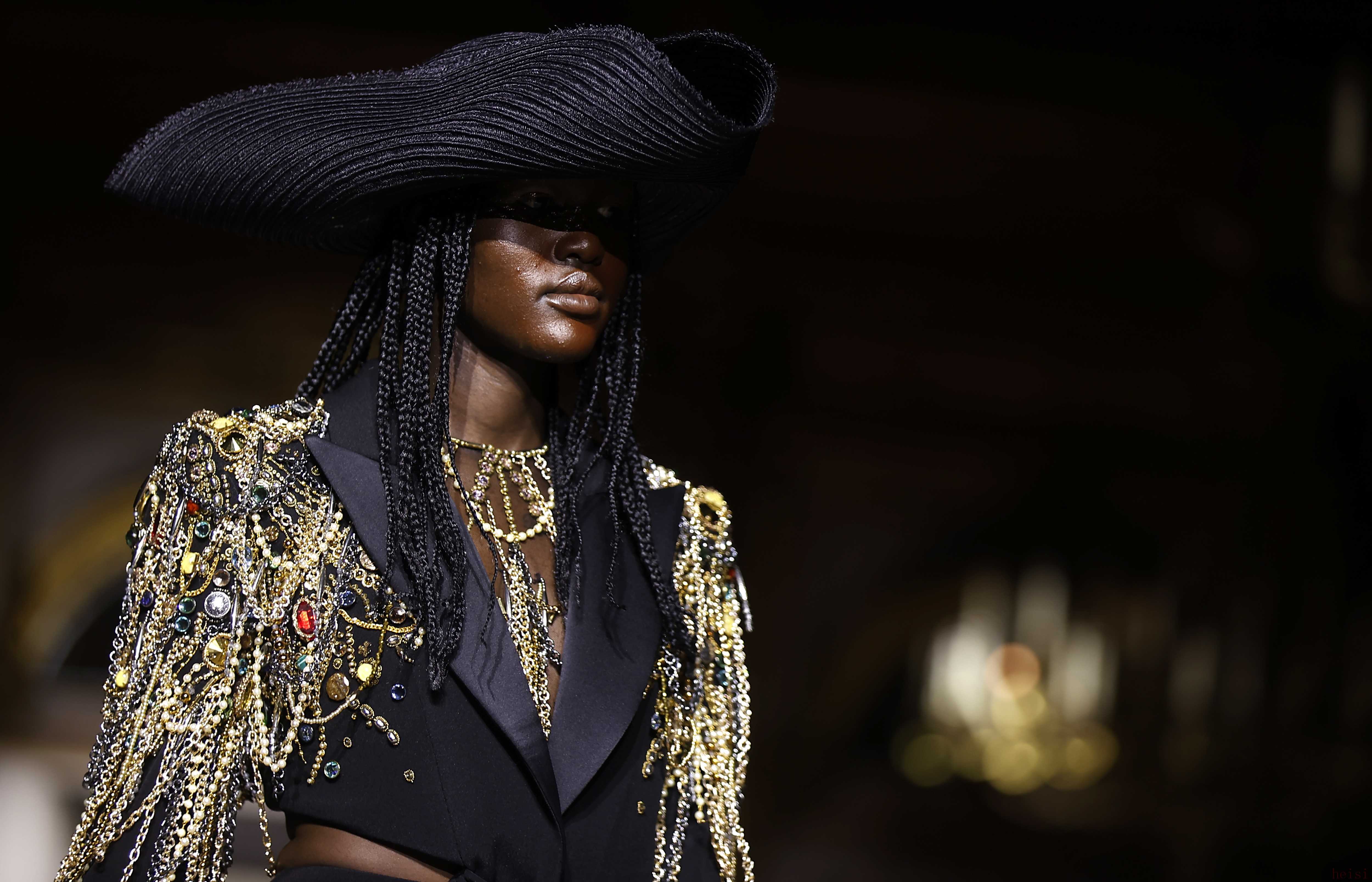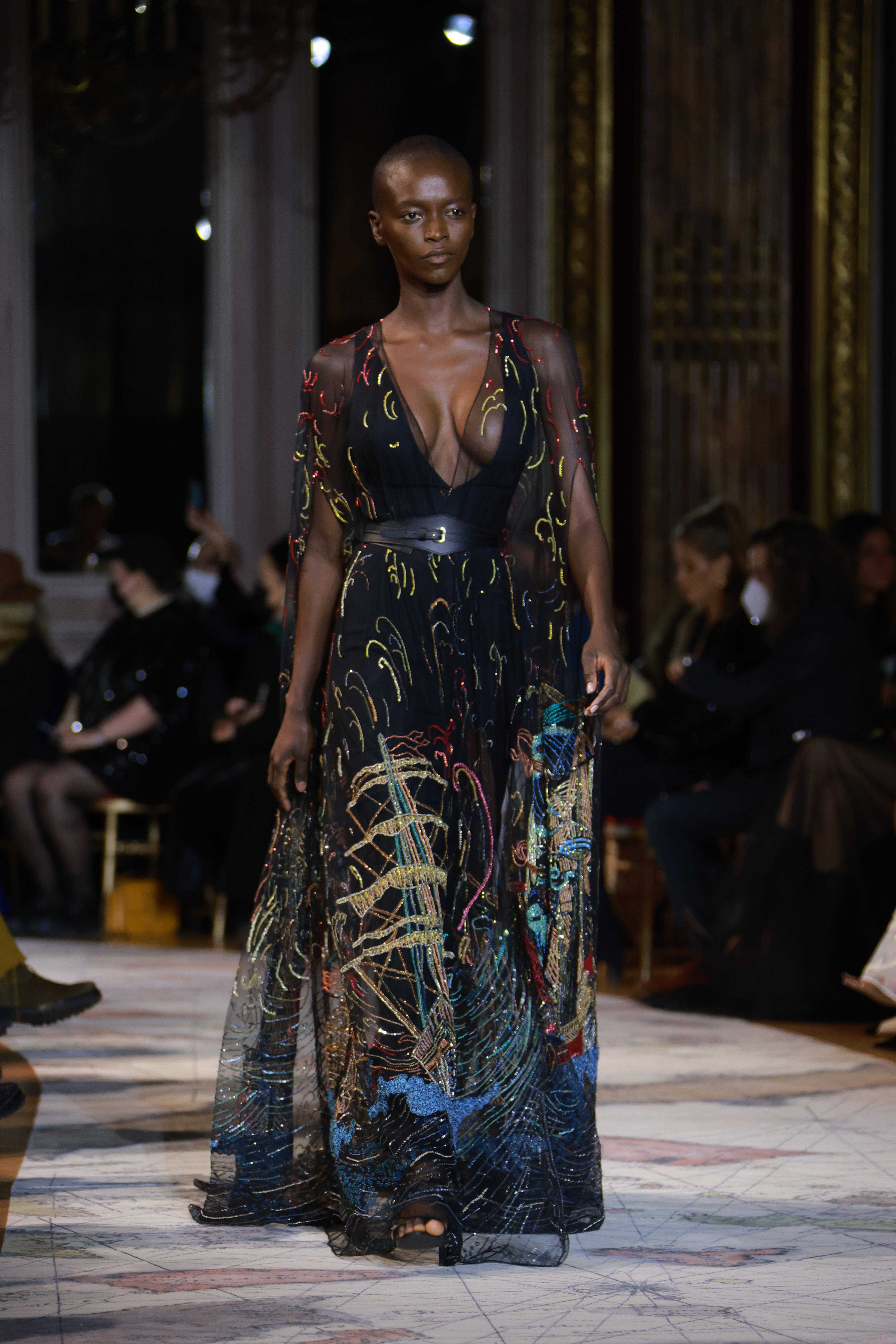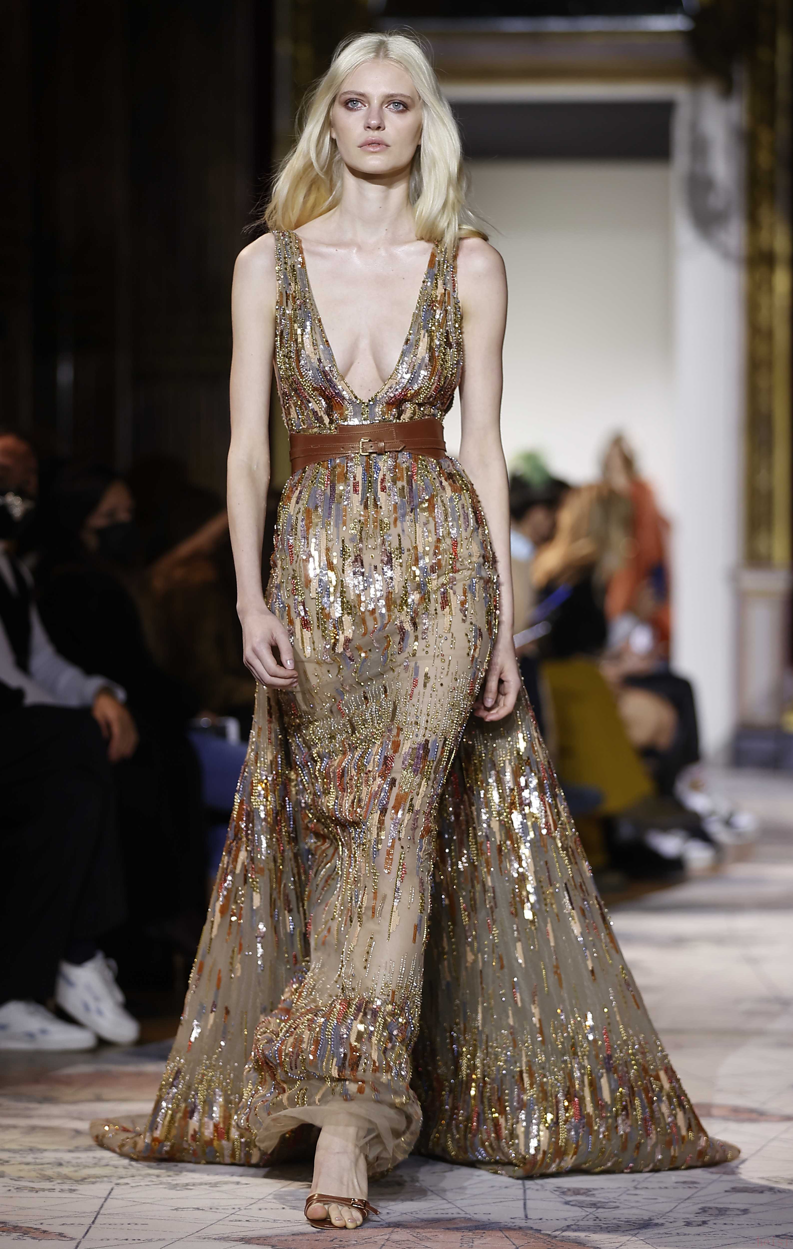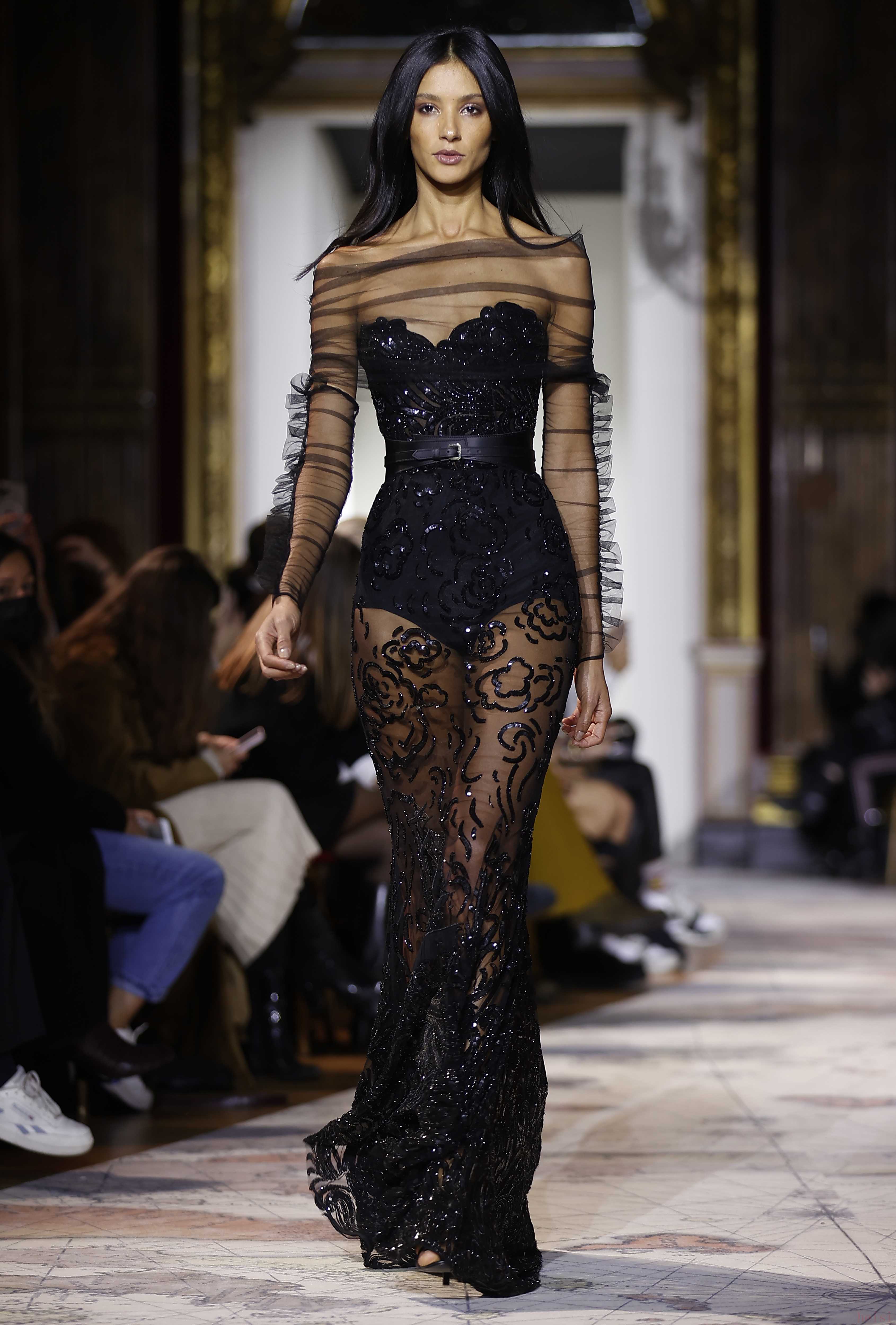 1月26日,在法國巴黎高級定制時裝周上,模特展示Zuhair Murad品牌2022春夏新品。 新華社/歐新