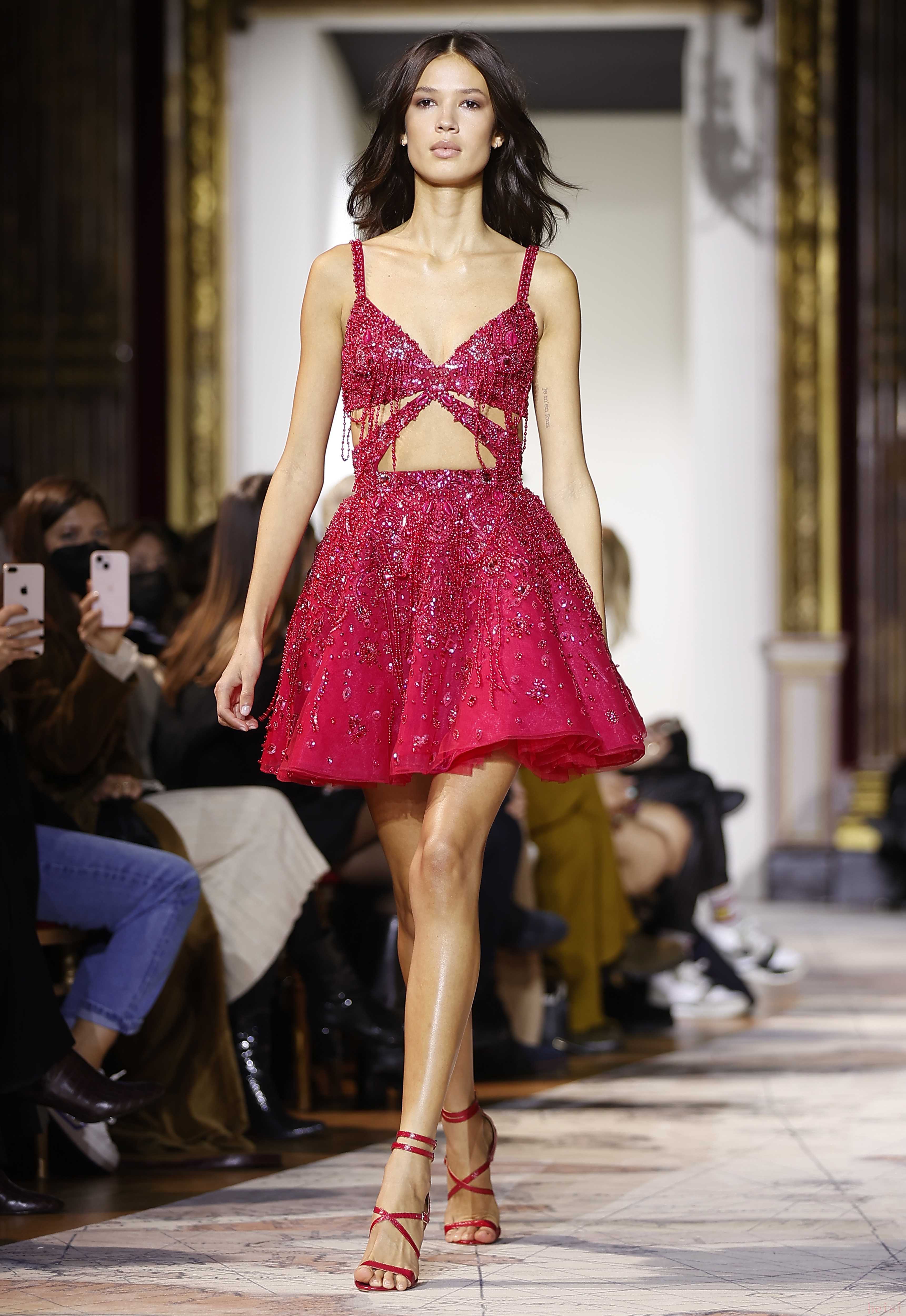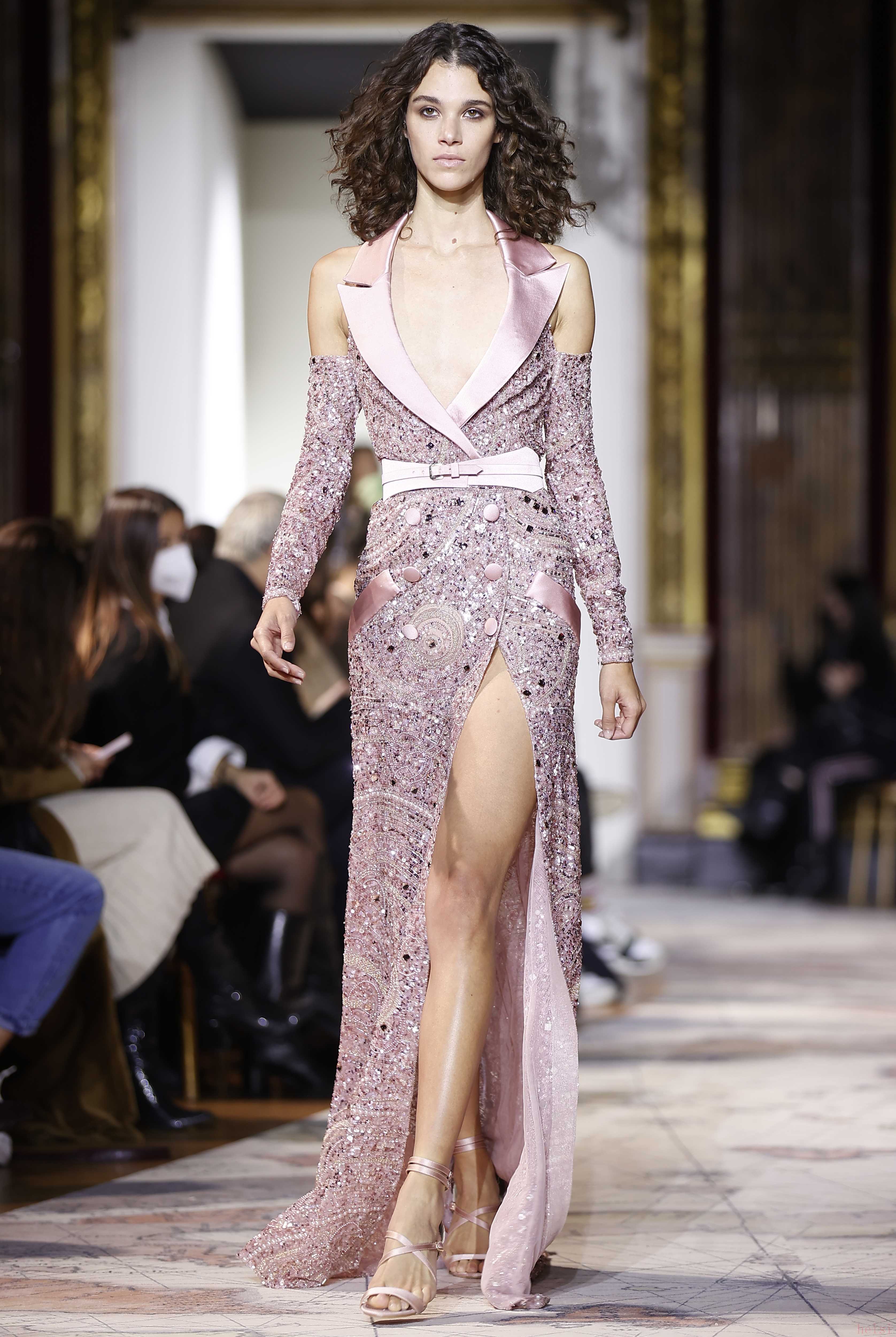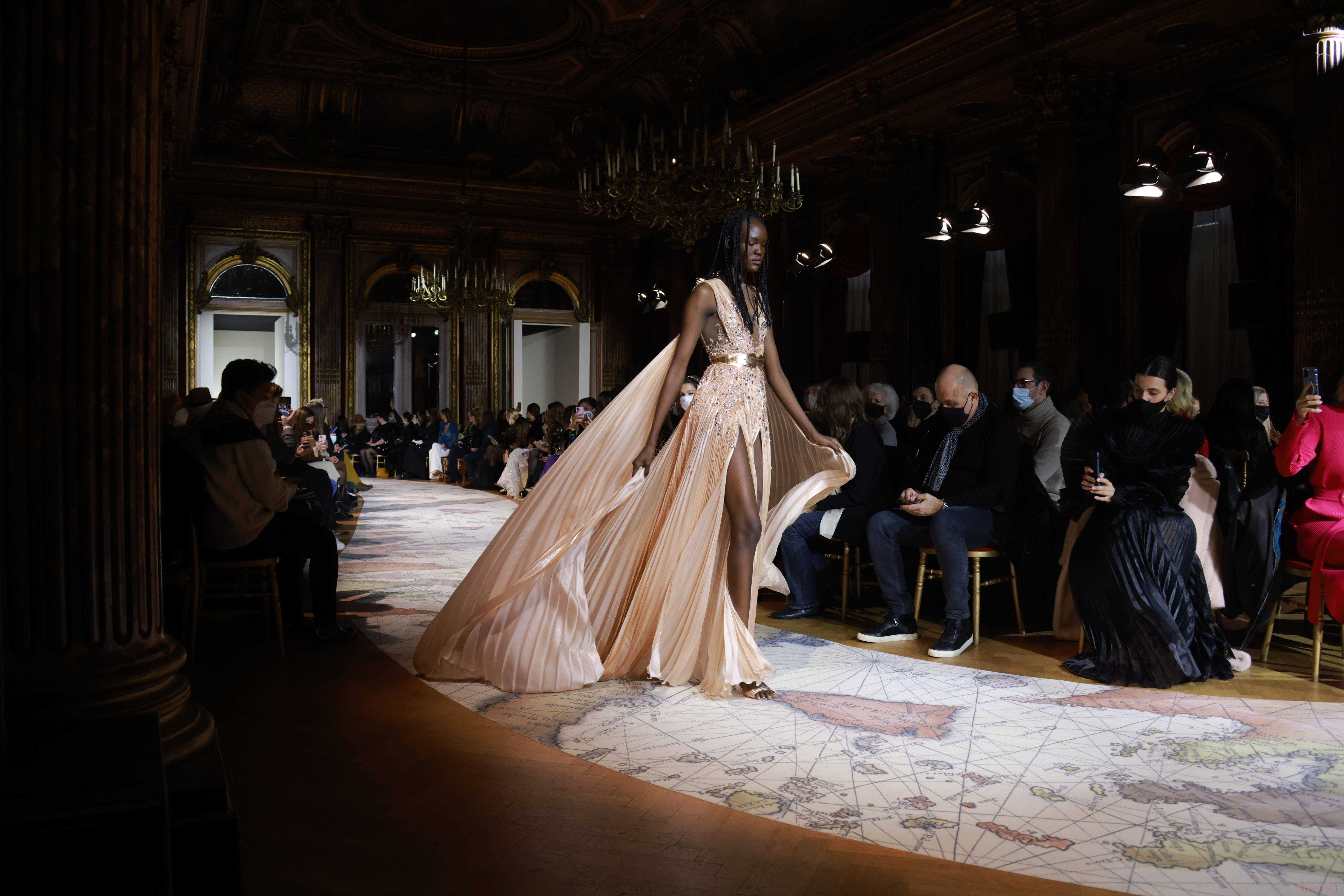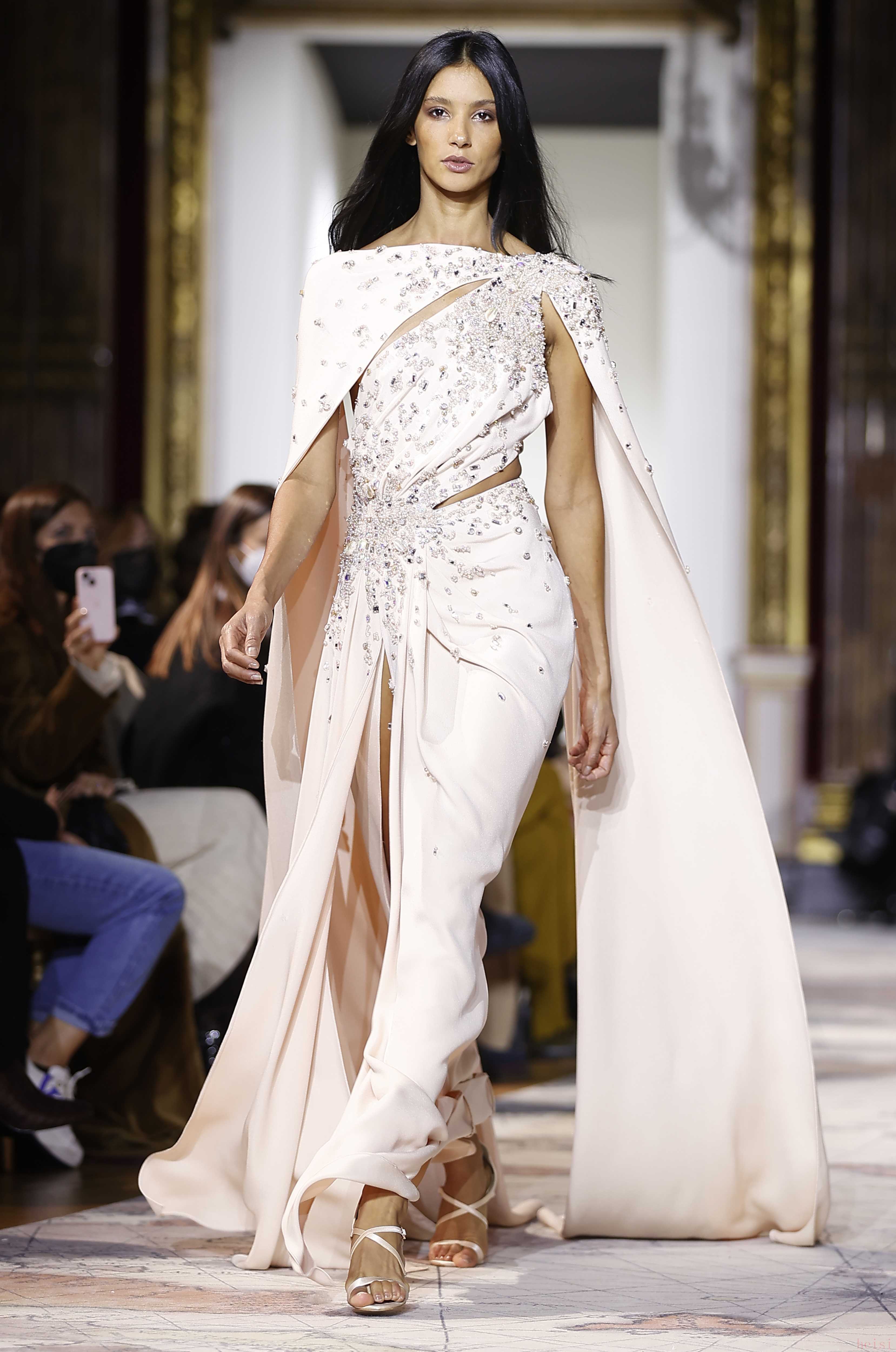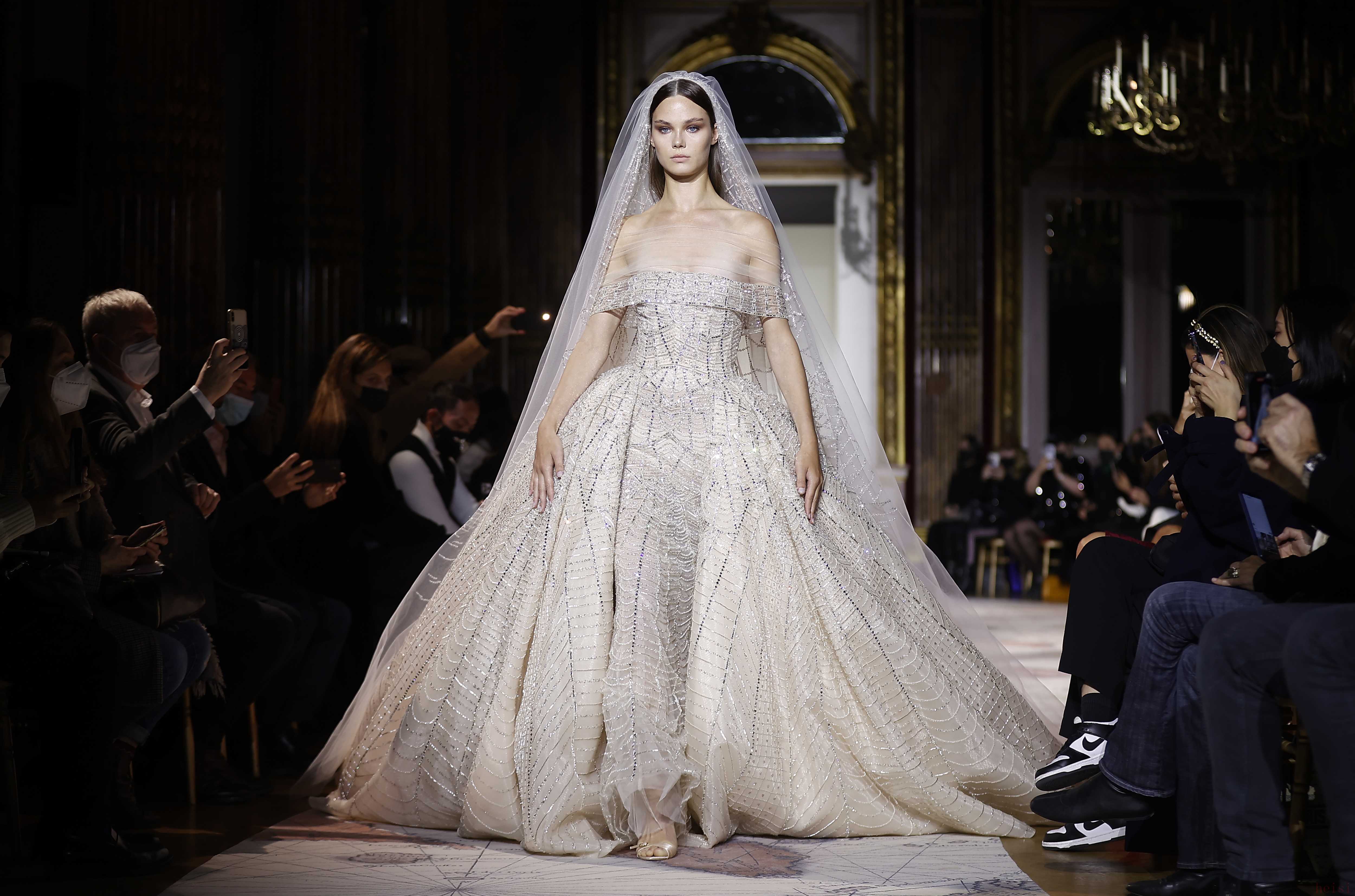 1月26日,在法國巴黎高級定制時裝周上,模特展示Zuhair Murad品牌2022春夏新品。 新華社/西霸