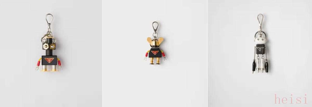 意大利奢侈品牌 Prada(普拉達(dá))則推出了機(jī)器人造型的皮革包袋掛飾。