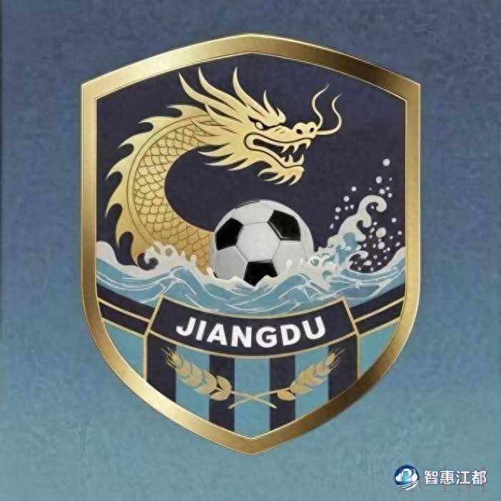 藍(lán)金交織的圖騰里,藏著整座城市的心跳:是龍舞江都大運(yùn)來的福氣,是江河湖交匯的靈氣,是“中國龍獅運(yùn)動名城”的豪氣,更是江都人民齊心協(xié)力走進(jìn)新時(shí)代的銳氣!這條“江都龍”,蓄勢待發(fā)。龍形線條遒勁,龍首昂揚(yáng)、目光如炬,恰似綠茵猛將。它盤踞蓄力,將龍舞江都民俗熱忱,化作賽場無堅(jiān)不摧的進(jìn)取雄心,龍身流轉(zhuǎn),藏行云流水的靈動。千年龍魂,終成足球拼搏脊梁。巨龍之下,足球破水而出、浪花翻涌,藏著江都最硬核的地域密碼!