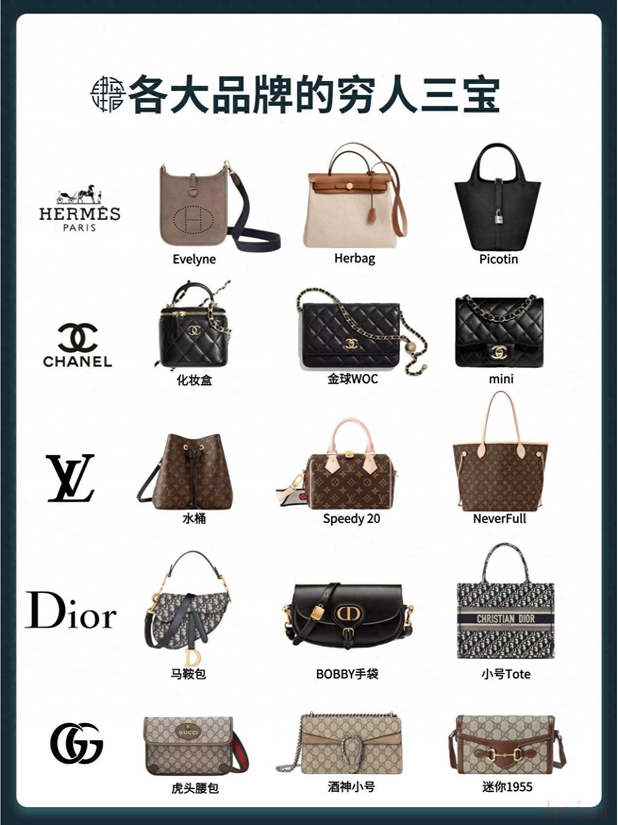 盤點(diǎn)一下各大品牌里,被戲稱為或常被認(rèn)為是“包包界三寶”或類似地位的單品,主要集中在以下幾個(gè)方面: