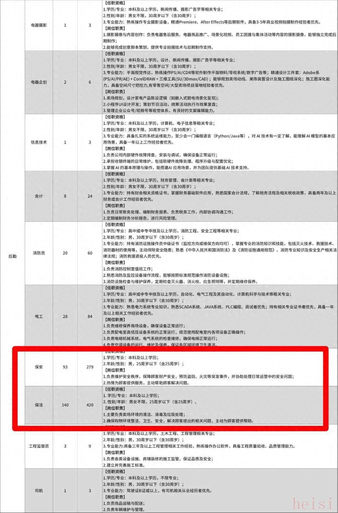 記者注意到,在《新鄉(xiāng)胖東來(lái)招聘公告》中,實(shí)際上,除服裝售后、超市烘焙師、廚師、消防員、電工外,其余崗位的基本要求均為本科及以上學(xué)歷,年齡普遍要求30歲以下。保潔擬招聘140人,保安擬招聘93人。