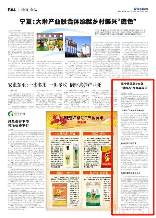 "標(biāo)題:獲中國品牌500強(qiáng)“陜糧農(nóng)”品牌再發(fā)力,彰顯陜西農(nóng)業(yè)新實力"