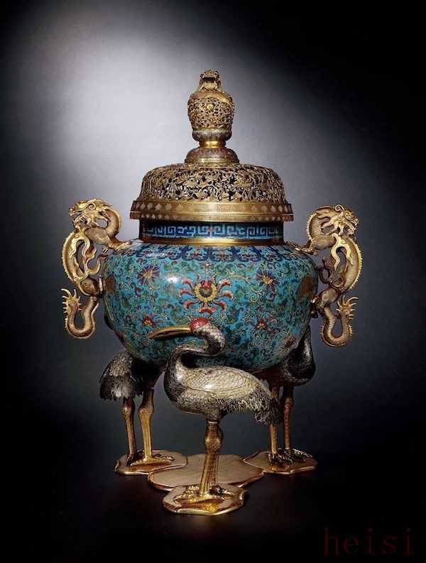 清乾隆 掐絲琺瑯雙龍耳鶴足瑞鹿大香熏