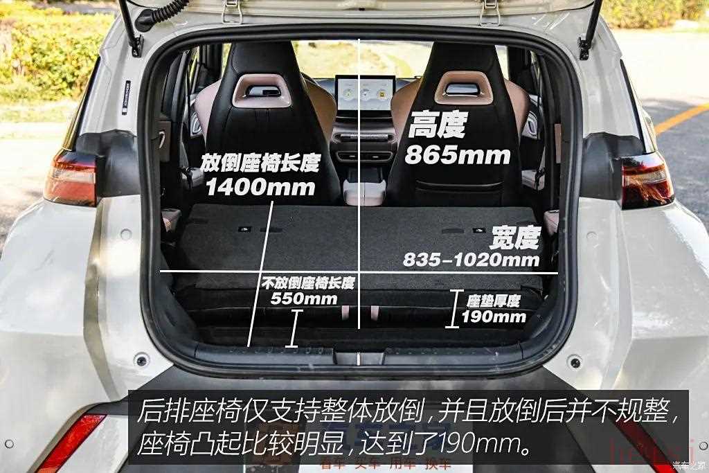 雖說后備廂空間并不是海鷗的強項,但實際的表現(xiàn)并不算拉胯。在不放倒座椅的情況下可以放下20+24寸兩個行李箱或者一個28寸的行李箱,后排座椅支持整體放倒。尺寸方面,在不放倒后排座椅的情況下常規(guī)縱深度為550mm,寬度為835-1020mm。后排座椅支持整體放倒,放倒后最大深度達到了1400mm,放倒后的官方容積為930L。