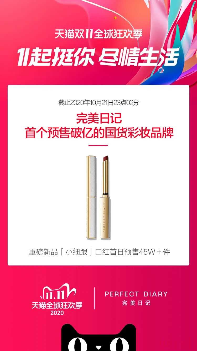 完美日記成為雙11首個(gè)預(yù)售破億的國(guó)貨彩妝品牌