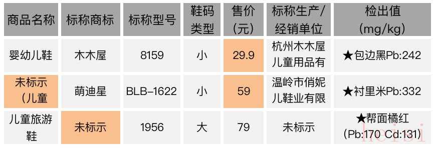 從本次抽檢結(jié)果看,無(wú)商標(biāo)、超低價(jià)童鞋,重金屬超標(biāo)的概率很大。下面三款砷(As)、鉛(Pb)、鎘(Cd)含量超出國(guó)標(biāo)限值。
