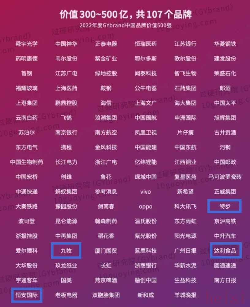 在品牌價(jià)值300億元—500億元的榜單中,特步、九牧、達(dá)利食品、恒安國(guó)際4個(gè)泉州品牌上榜。