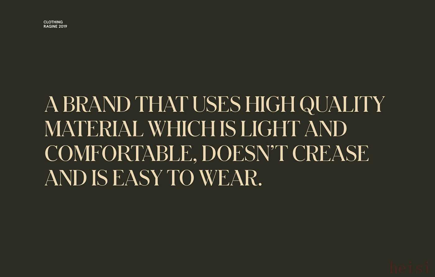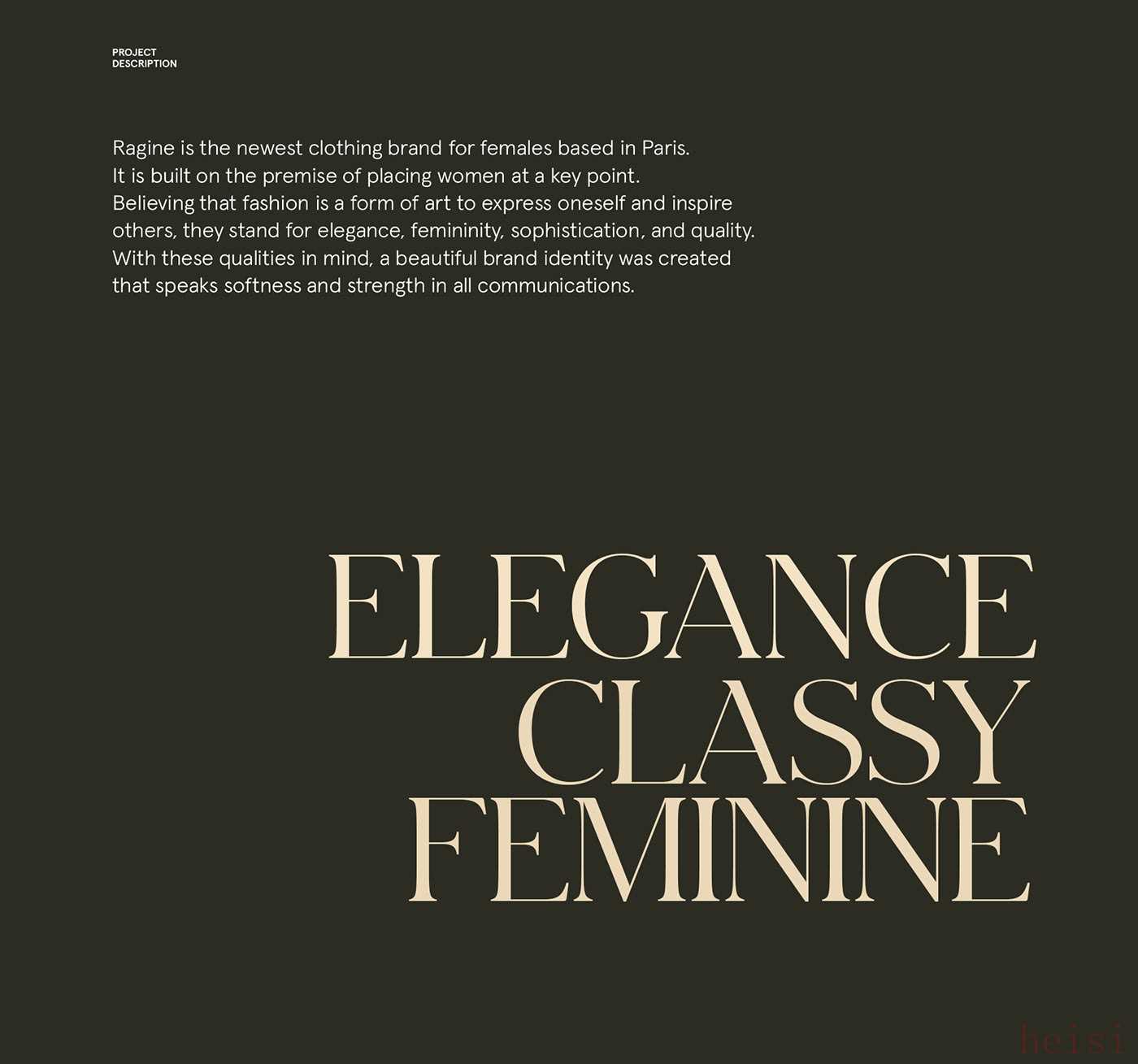 Ragine是總部設(shè)在巴黎的最新的女裝品牌。ltg是在將女性放在關(guān)鍵位置的前提下建立的。相信時尚是表達自我和啟發(fā)他人的一種藝術(shù)形式,他們代表著優(yōu)雅,女性化,精致和品質(zhì)。有了這些品質(zhì),就創(chuàng)造了一個美麗的品牌形象,在所有溝通中都體現(xiàn)著柔韌性和力量。