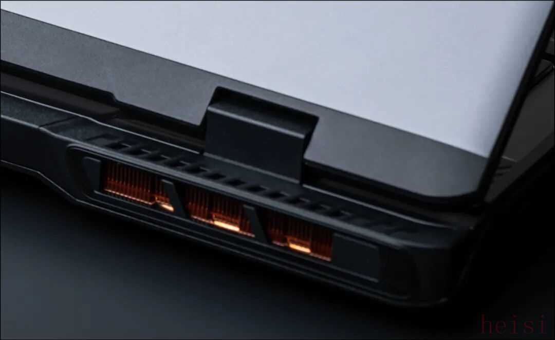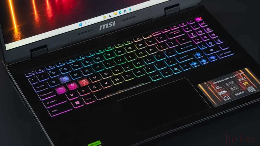 微星的大部分游戲本都有個(gè)特點(diǎn),就是不算輕,神影15 2025款2.62kg也如此。不過(guò)它并不會(huì)給你留下“傻大粗笨”的感覺(jué),因?yàn)樗业耐庥^設(shè)計(jì)都相當(dāng)有特色,比如該機(jī),D殼甚至有非常個(gè)性的非對(duì)稱(chēng)斜向突起設(shè)計(jì),檔次感頗強(qiáng)。而C面的24區(qū)鍵盤(pán)背光亦相當(dāng)拉風(fēng),賽博感強(qiáng)烈。
