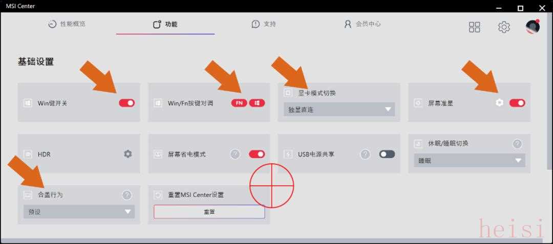 你可能會(huì)說(shuō):唉,這右置的Fn鍵有些不習(xí)慣啊,不都是左置的嗎?沒(méi)關(guān)系,《MSI Center》控制臺(tái)程序里提供了Win鍵和Fn鍵功能對(duì)調(diào)的設(shè)計(jì)。另外,還有Win鍵禁用功能,防止玩游戲時(shí)誤觸——這些都是實(shí)實(shí)在在為游戲用戶考量的設(shè)計(jì)。而顯卡模式切換(獨(dú)顯直連/混合顯卡/集顯模式)、筆記本合蓋行為等,在《MSI Center》控制臺(tái)里也能快速設(shè)置,綜合來(lái)看,在“為游戲而生”的細(xì)節(jié)上,微星游戲本是做得很不錯(cuò)的。接口豐富,USB大口全10Gbps