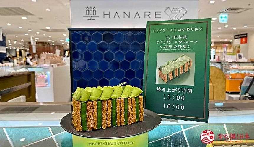 「Henri Charpentier-HANARE-」是JR京都伊勢丹限定店鋪「京?匠抹茶費南雪」的奶油、杏仁與抹茶的香氣濃郁,韻味綿長。而且包裝精美,送禮很體面。此外,這款現(xiàn)做的抹茶千層派「和束的茶田」(制作中的米爾菲耶「和束的茶田」)可以說是抹茶控的夢幻逸品!每天店內(nèi)現(xiàn)做,創(chuàng)作靈感來自和束町一層層的美麗茶田。平日只有兩個時間段供應(yīng),數(shù)量有限,賞味期限僅限當(dāng)天。