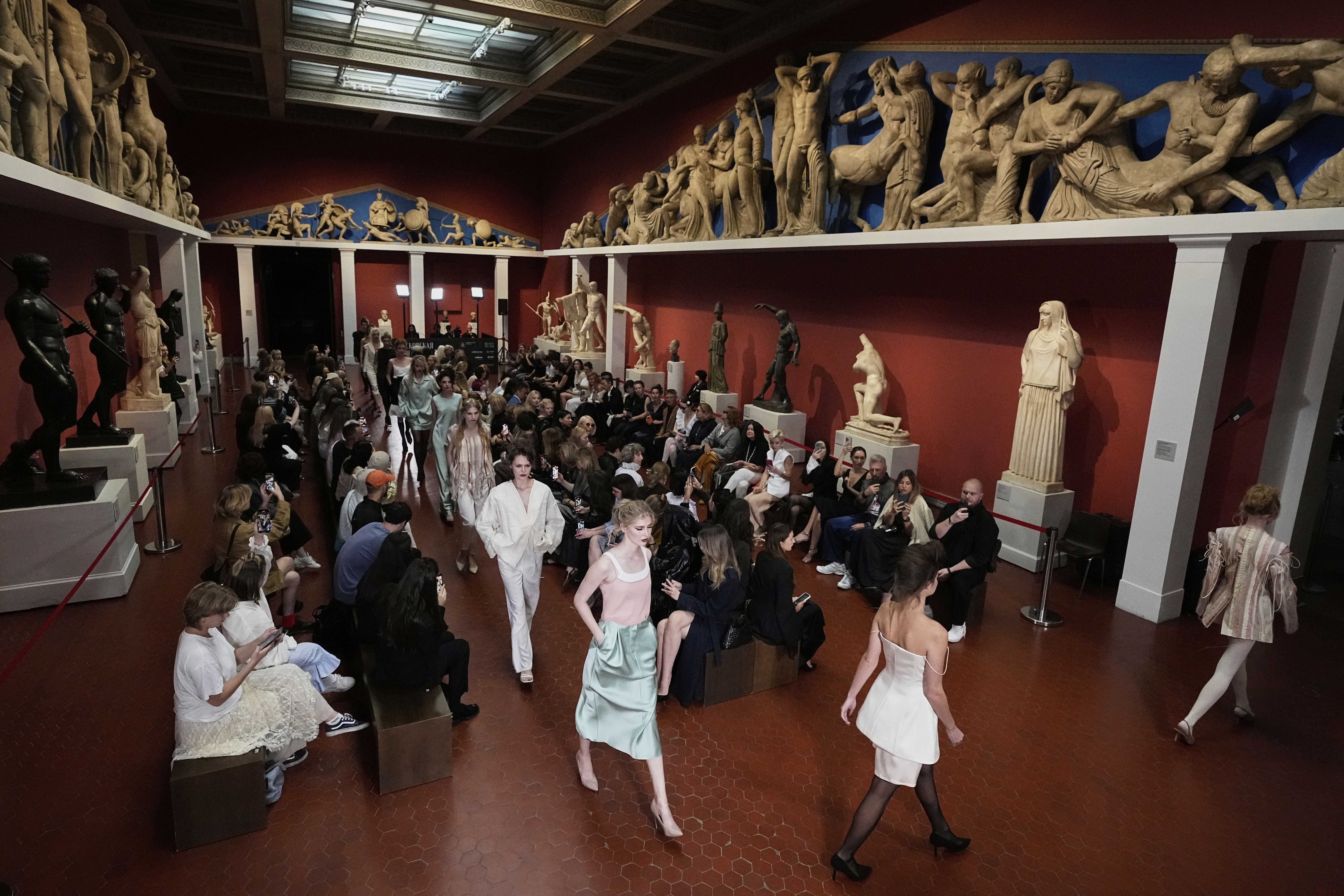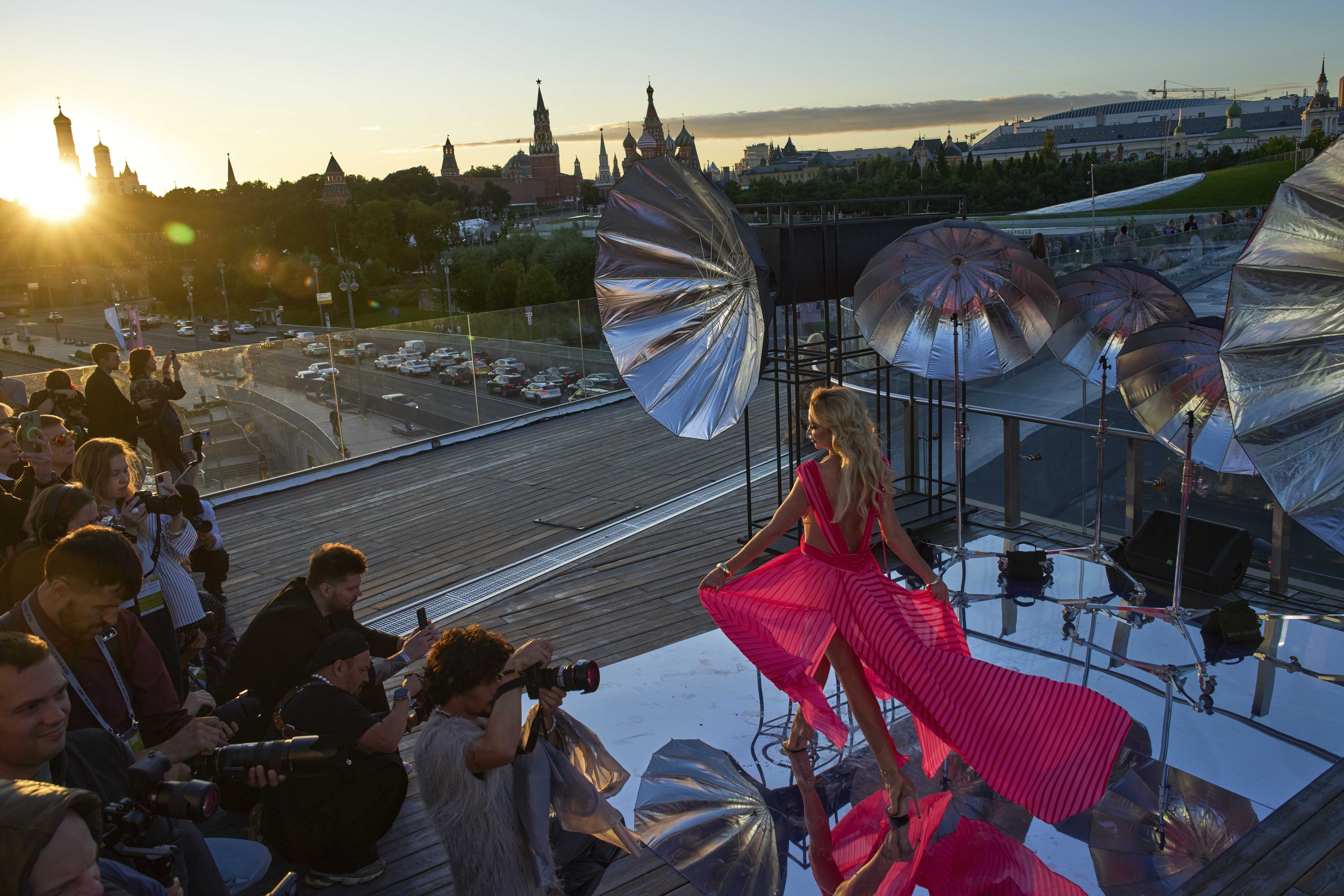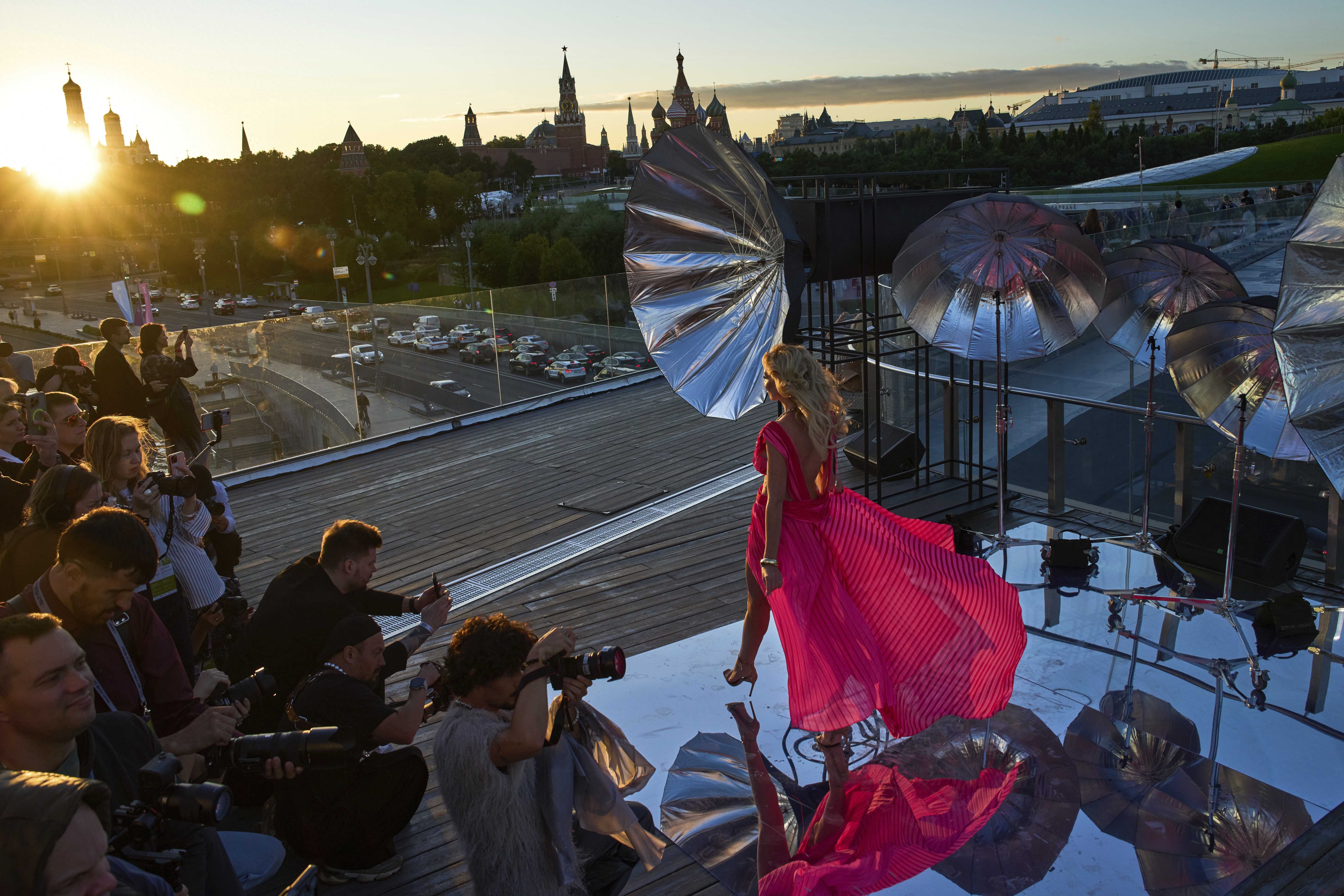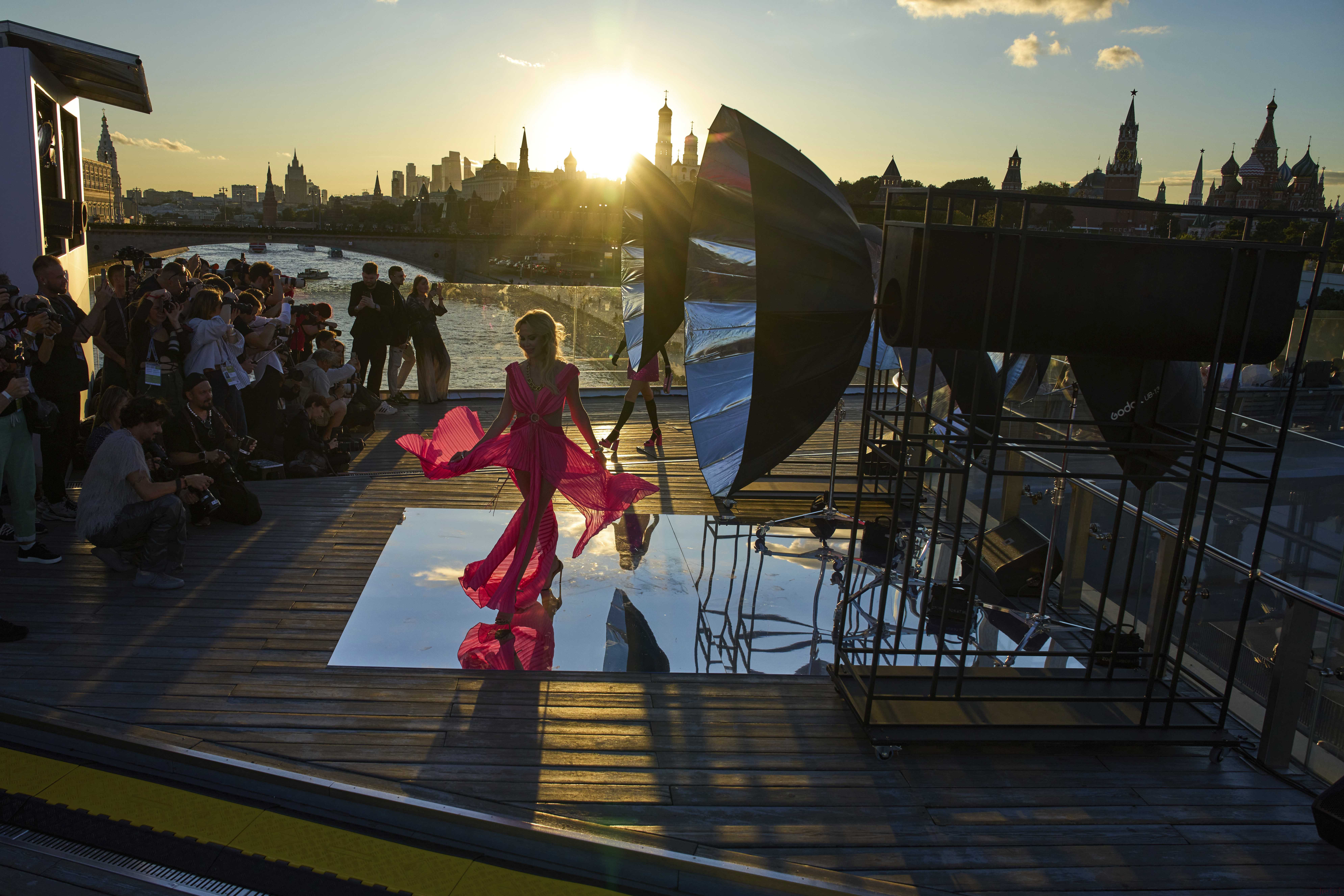 9月1日,模特在俄羅斯莫斯科時裝周上展示設(shè)計(jì)師尤利婭·達(dá)拉基揚(yáng)設(shè)計(jì)的新款時裝。新華社/美聯(lián)