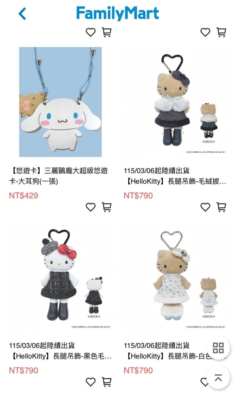 想要購買這的粉絲,只需要下載全家APP、進(jìn)入功能后搜尋就能找到相關(guān)商品。不過要特別注意的是,目前這些商品、并採取預(yù)購下單方式,售價(jià)為790~899元不等,到貨日則為2026年3月,能夠等待的粉絲再下單。