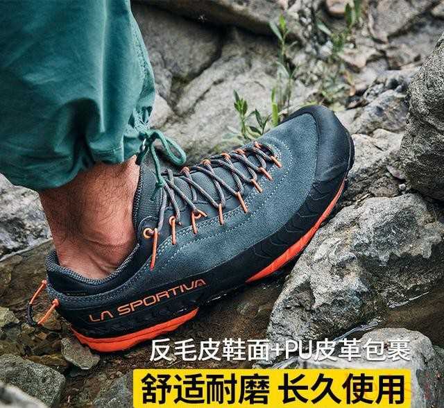 喜歡鉆研技術(shù)路線的朋友可以看看LASPORTIVA的TX4或者新款TX5。這種鞋的定位是“接近鞋”,意思是為了去攀巖而走的那段爛路設(shè)計(jì)的。它的鞋頭包裹做得極好,防踢防撞。那種獨(dú)特的系帶系統(tǒng),能把腳包裹得嚴(yán)嚴(yán)實(shí)實(shí),腳感非常整,走在細(xì)窄的巖石棱上信心十足。