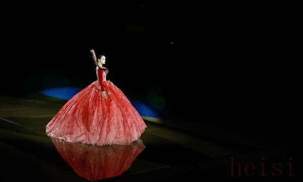 那個(gè)位于場館中央位置的舞臺(tái),特別絢麗多彩。燈光打上去的時(shí)候,不僅五光十色,而且還可以清晰地看到舞臺(tái)前方專門設(shè)計(jì)的水池,它美妙地倒映出舞臺(tái)上的一切,彰顯出水天一色的效果。這種簡約而又不失華麗的舞美設(shè)計(jì),讓觀眾眼前一亮。